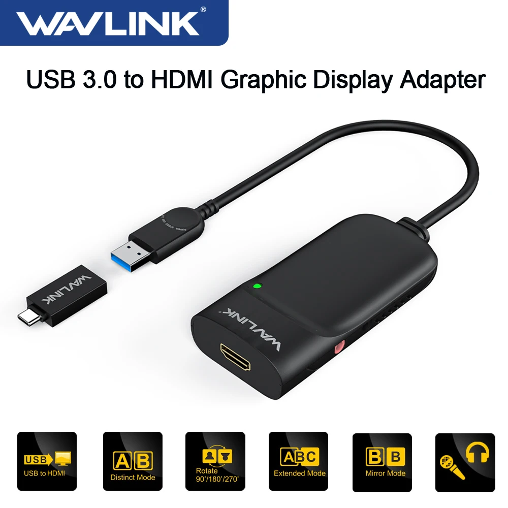 Comprar Wavlink-Adaptador de gráficos de vídeo Compatible con USB 3,0 a HDMI, adaptador de tarjeta de vídeo externa 2K, extendido/espejo para Windows Mac M1 M2
