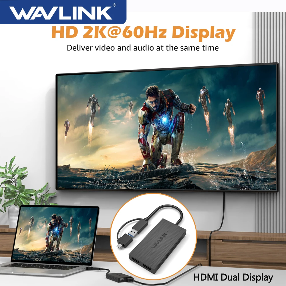 Comprar Wavlink-Adaptador de pantalla Dual 2K Compatible con USB 3,0 A HDMI, A/USB C A HDMI, para monitores duales, 1080P @ 60Hz, para Windows, Mac OS