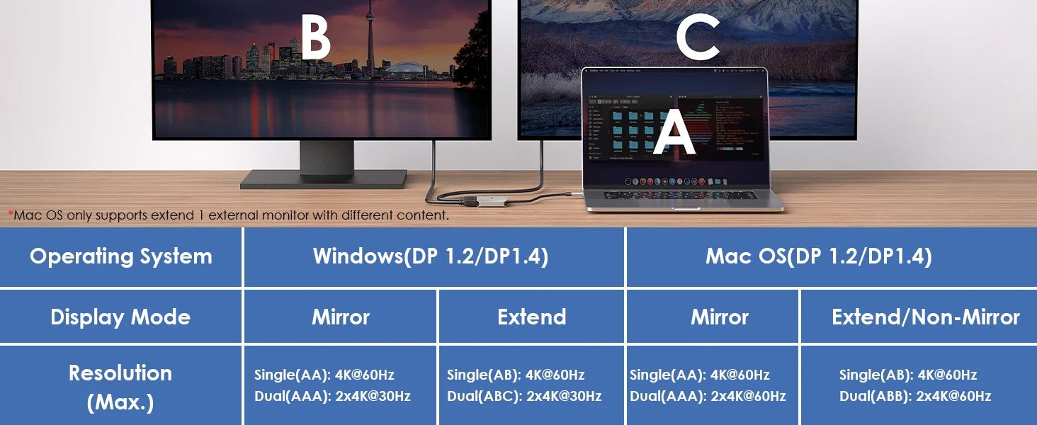 Sin necesidad de controladores externos, ¡solo conéctelo y juegue! Este Adaptador 3 en 1 de 2 a HDMI admite una sola pantalla 4K a 60Hz y dos pantallas 4K a 30Hz. Por lo que es perfecto para reflejar o extender la imagen/vídeo de su portátil a una pantalla externa, como un proyector o un monitor basado en HDMI.