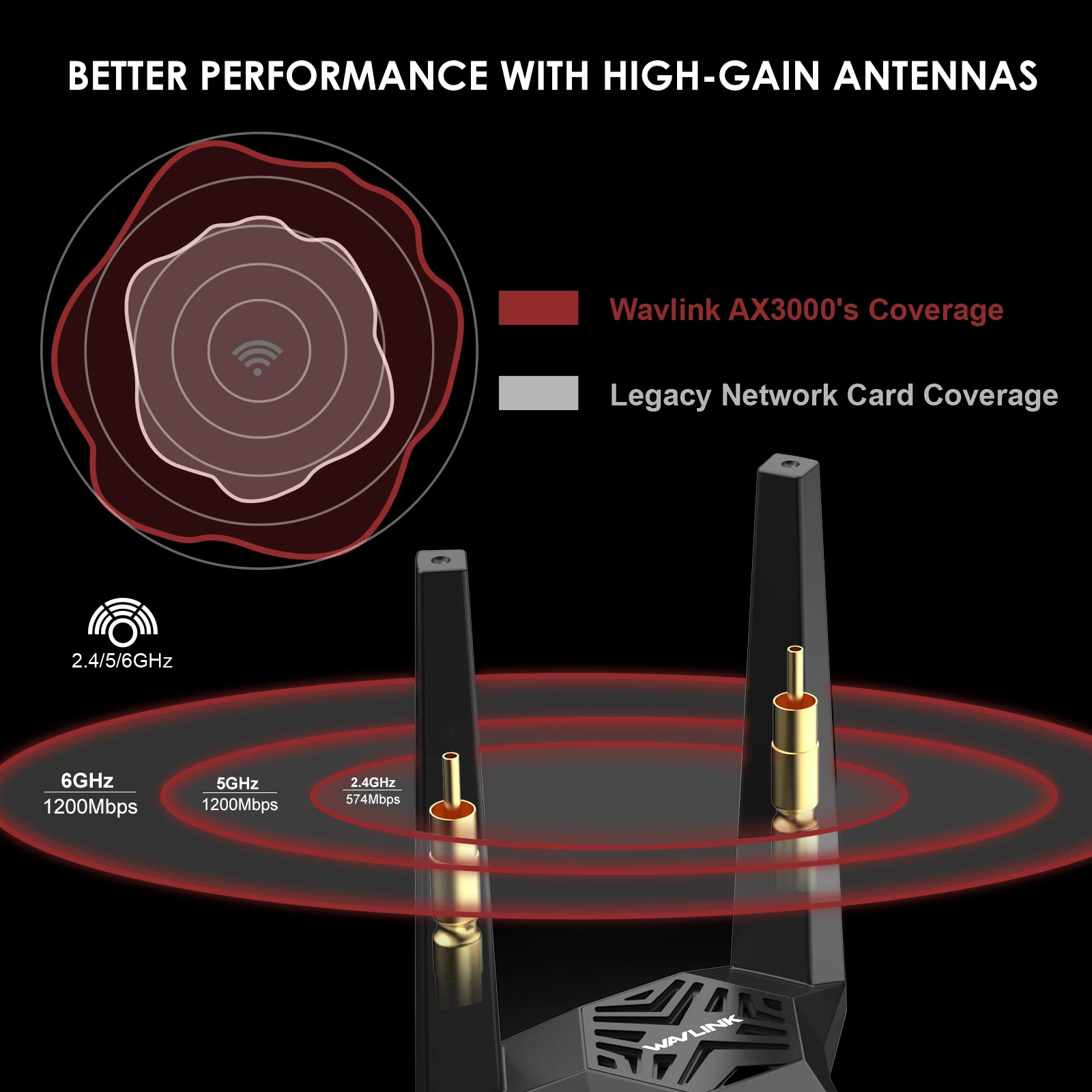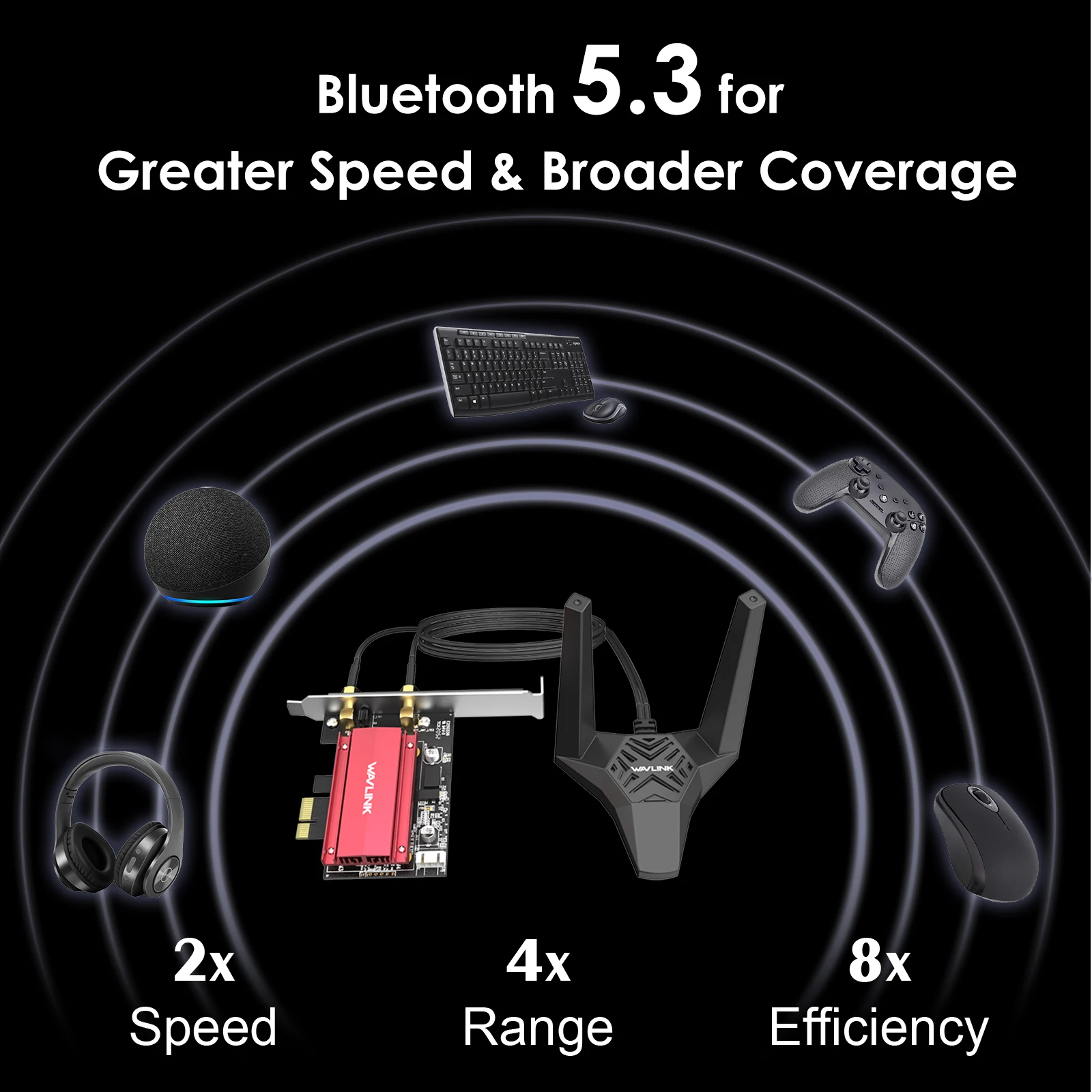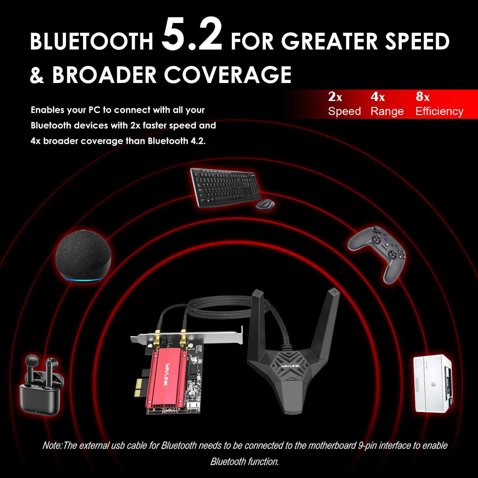 Adaptador WiFi PCIe WN675X2-Wavlink AX3000, WiFi 6E Tri-band de nueva generación con Bluetooth 5.2, hasta 3000 Mbps con 6 GHz, MU-MIMO, OFDMA, latencia ultrabaja para PC de escritorio, compatible con Windows 11, 10 (64 bits)