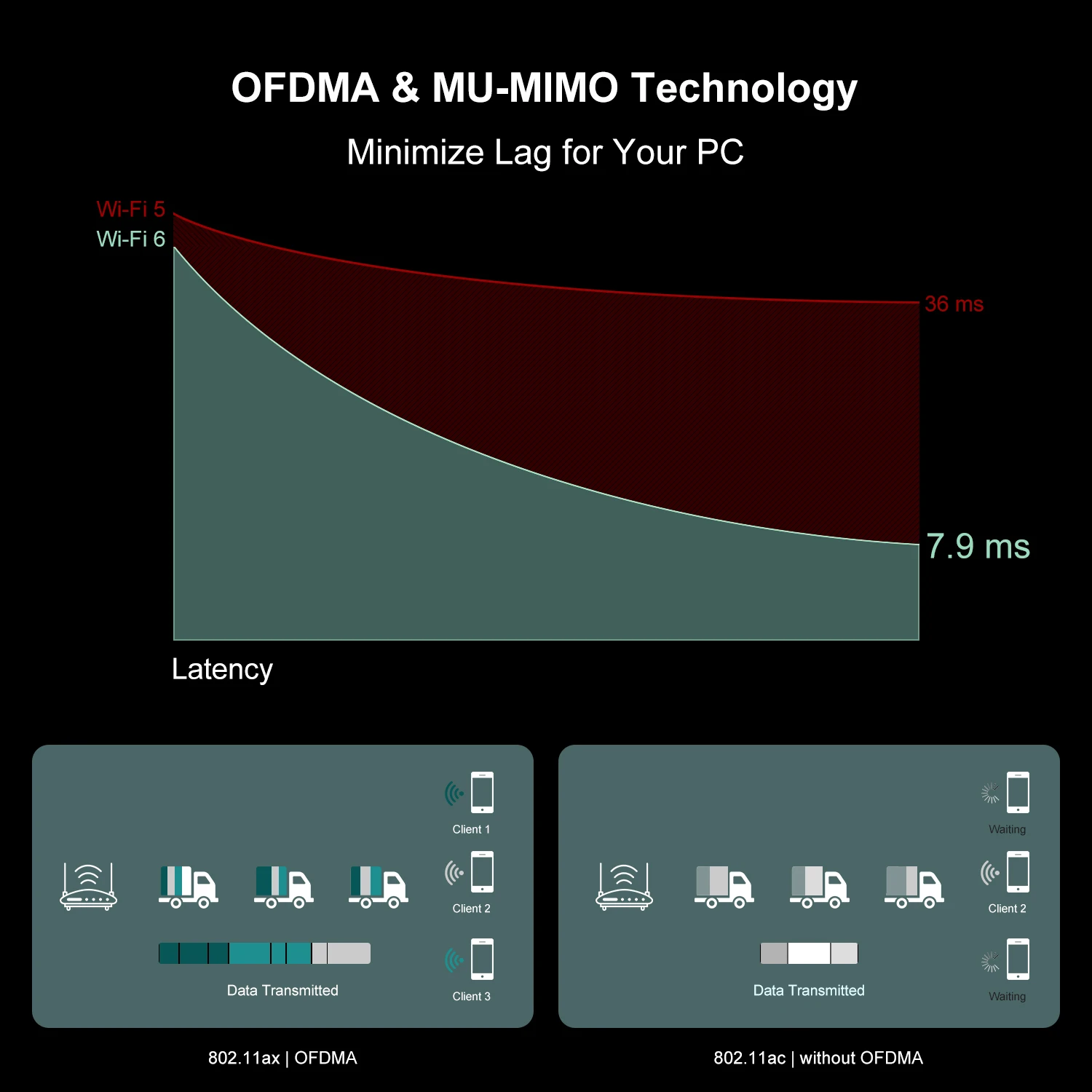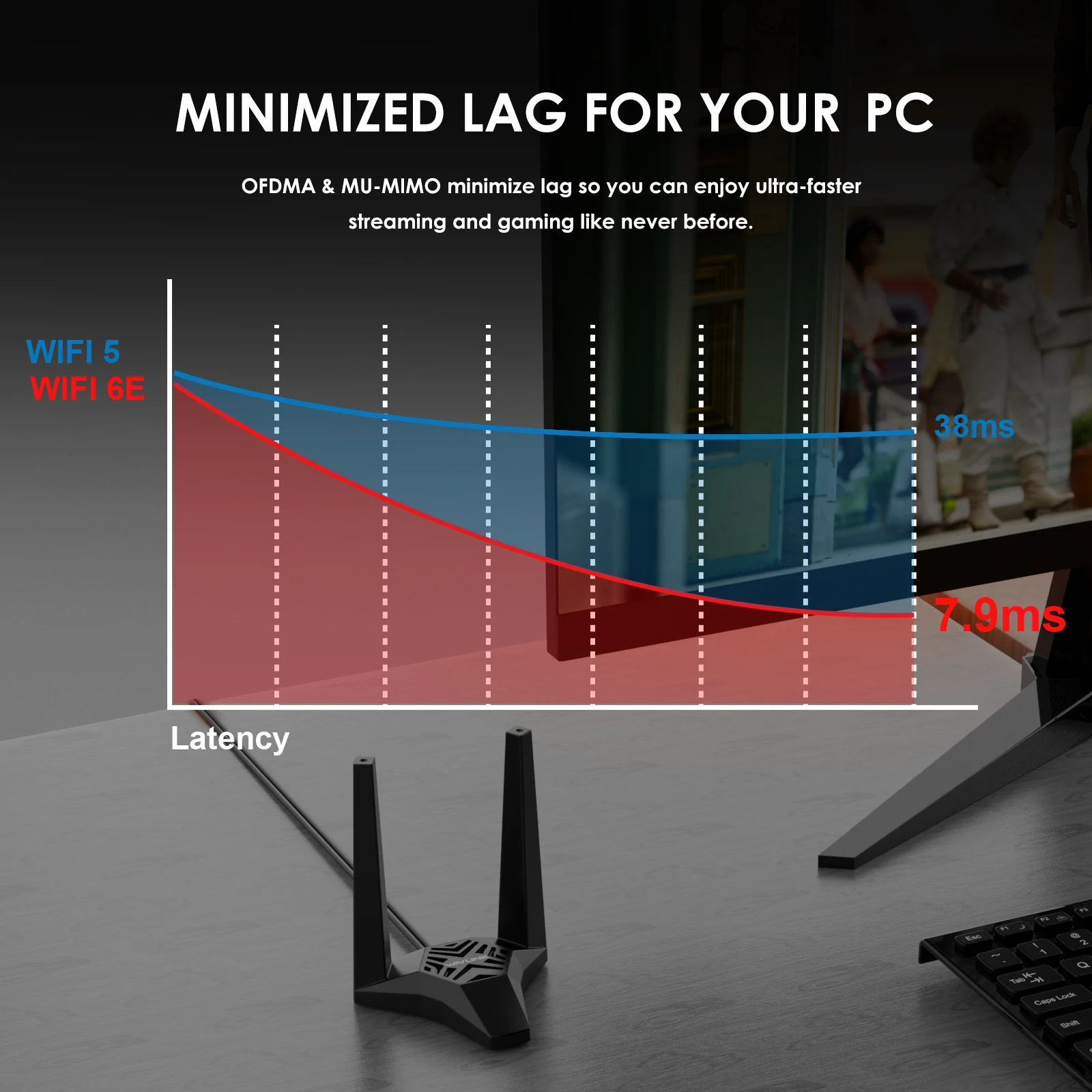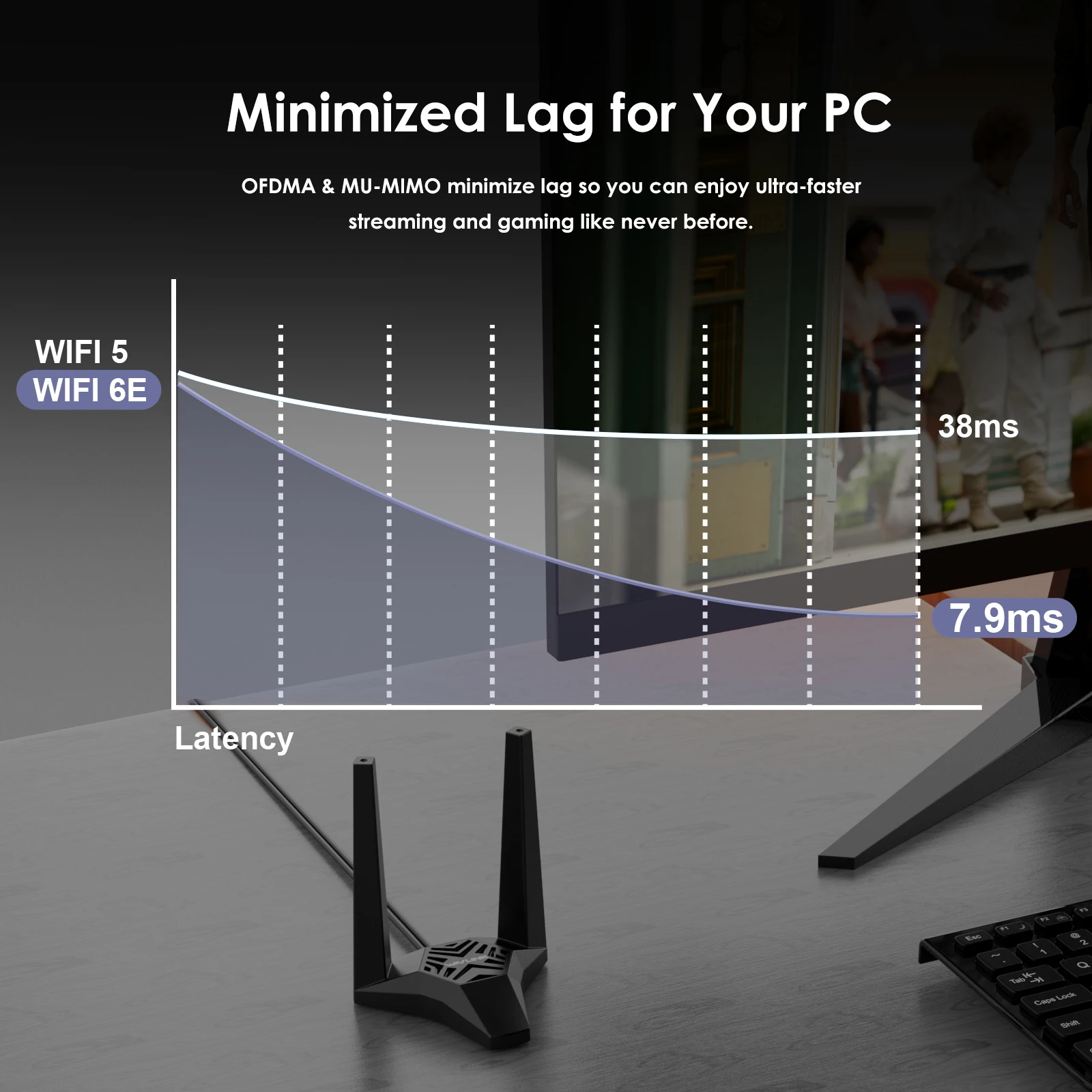 Adaptador WiFi PCIe WN675X2-Wavlink AX3000, WiFi 6E Tri-band de nueva generación con Bluetooth 5.2, hasta 3000 Mbps con 6 GHz, MU-MIMO, OFDMA, latencia ultrabaja para PC de escritorio, compatible con Windows 11, 10 (64 bits)