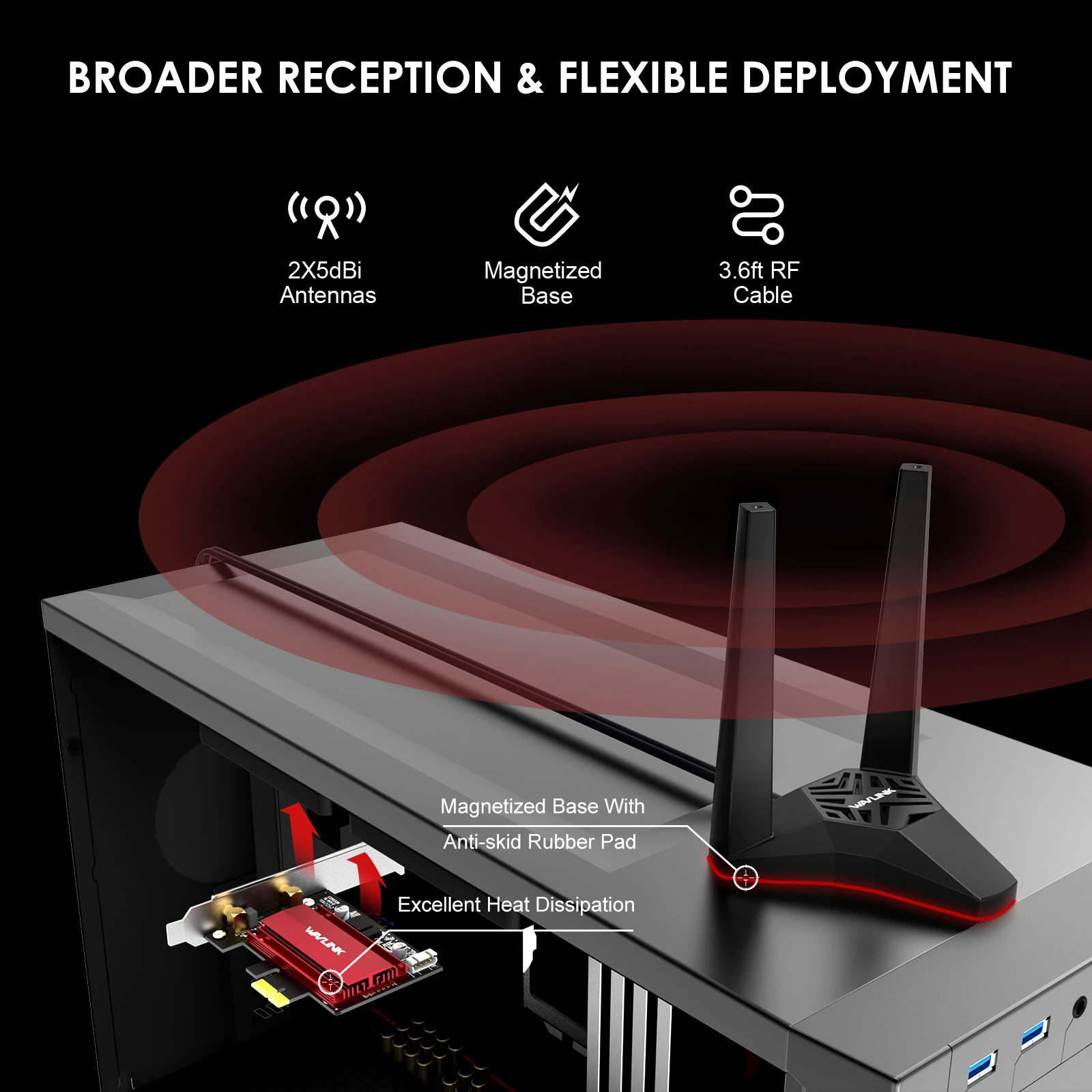 Wavlink Wi-Fi 6E AX3000 Adaptador WiFi PCIe de tres bandas con base de antena magnética