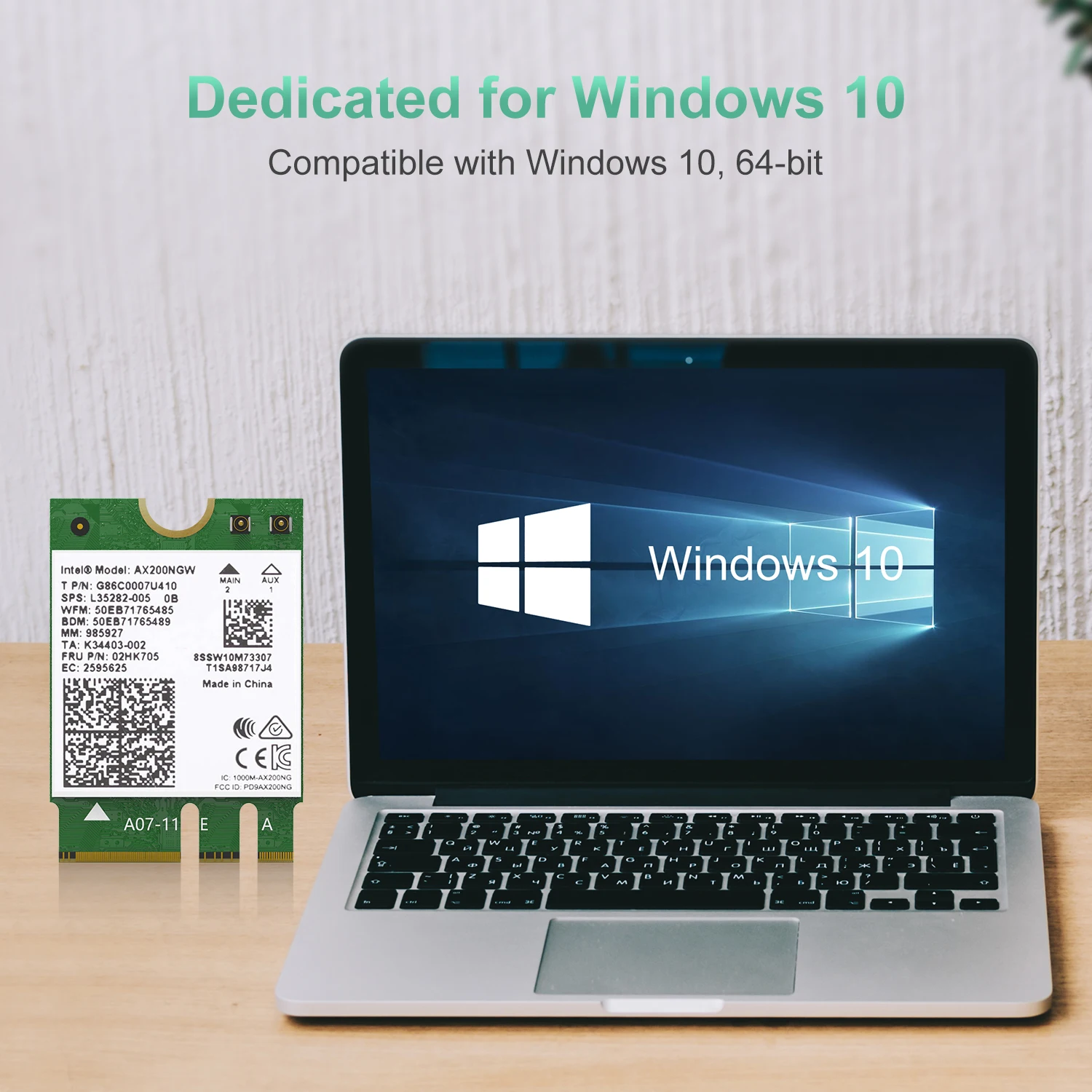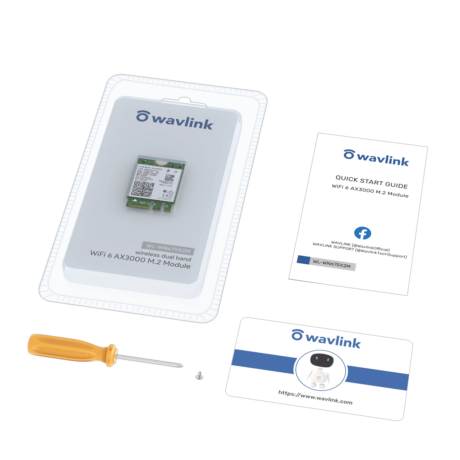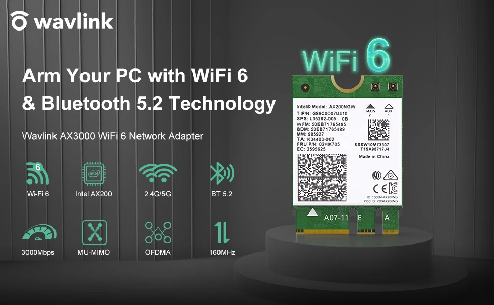 WN675X2M-Wavlink AX WiFi 6 3000Mbps Adaptador WiFi para Windows 10 64bit Chrome OS y Linux Laptop o PC de escritorio, módulo WiFi de doble banda 802.11AX 2,4 GHz 574Mbps/5GHz 2400Mbps (160MHz) con Bluetooth 5.2 Intel WiFi 6 AX200NGW