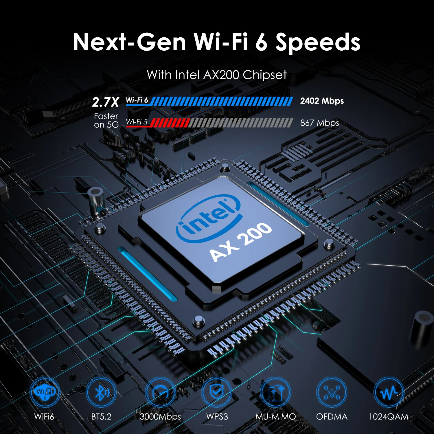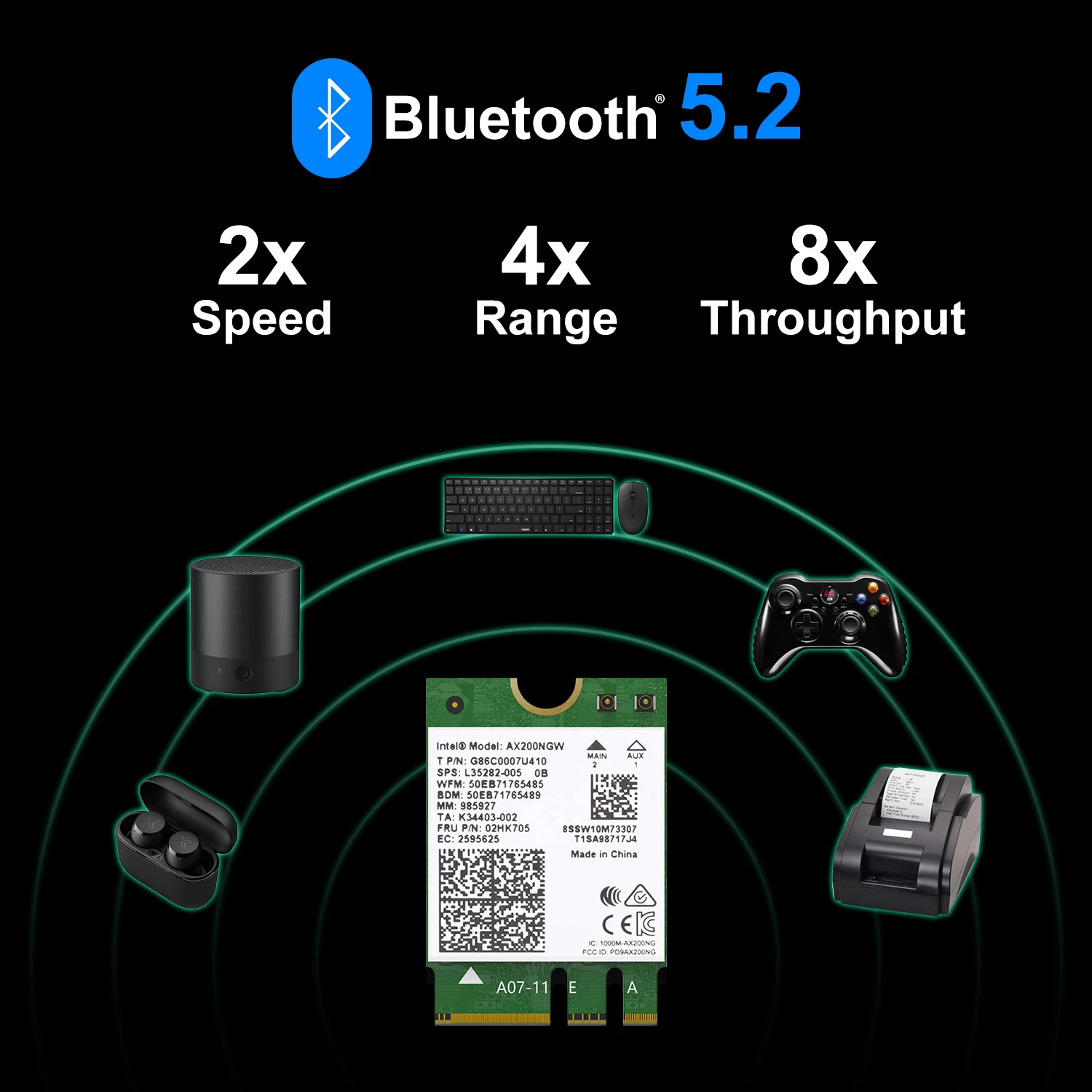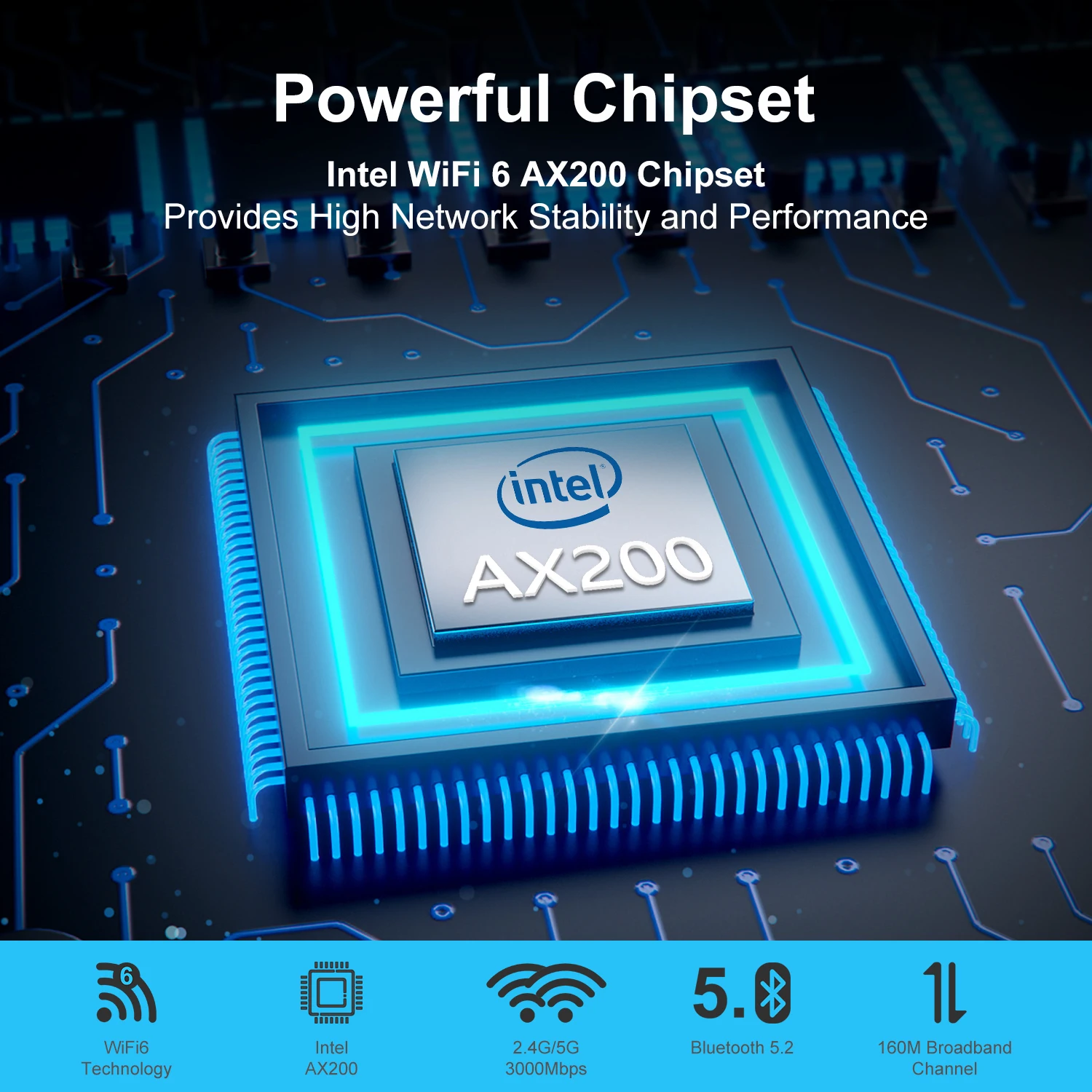 WN675X2M-Wavlink AX WiFi 6 3000Mbps Adaptador WiFi para Windows 10 64bit Chrome OS y Linux Laptop o PC de escritorio, módulo WiFi de doble banda 802.11AX 2,4 GHz 574Mbps/5GHz 2400Mbps (160MHz) con Bluetooth 5.2 Intel WiFi 6 AX200NGW