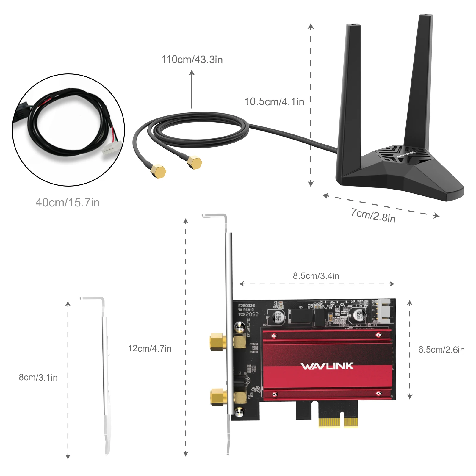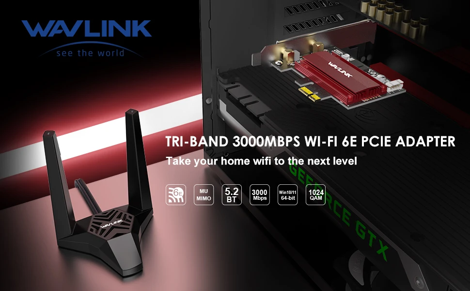 Comprar Wavlink AX3000 PCIe WiFi Adaptador Wi-Fi 6E Tri-Band Bluetooth 5.2 Tarjeta de red de hasta 3000 Mbps para PC de escritorio Windows 11/10(64 bits)