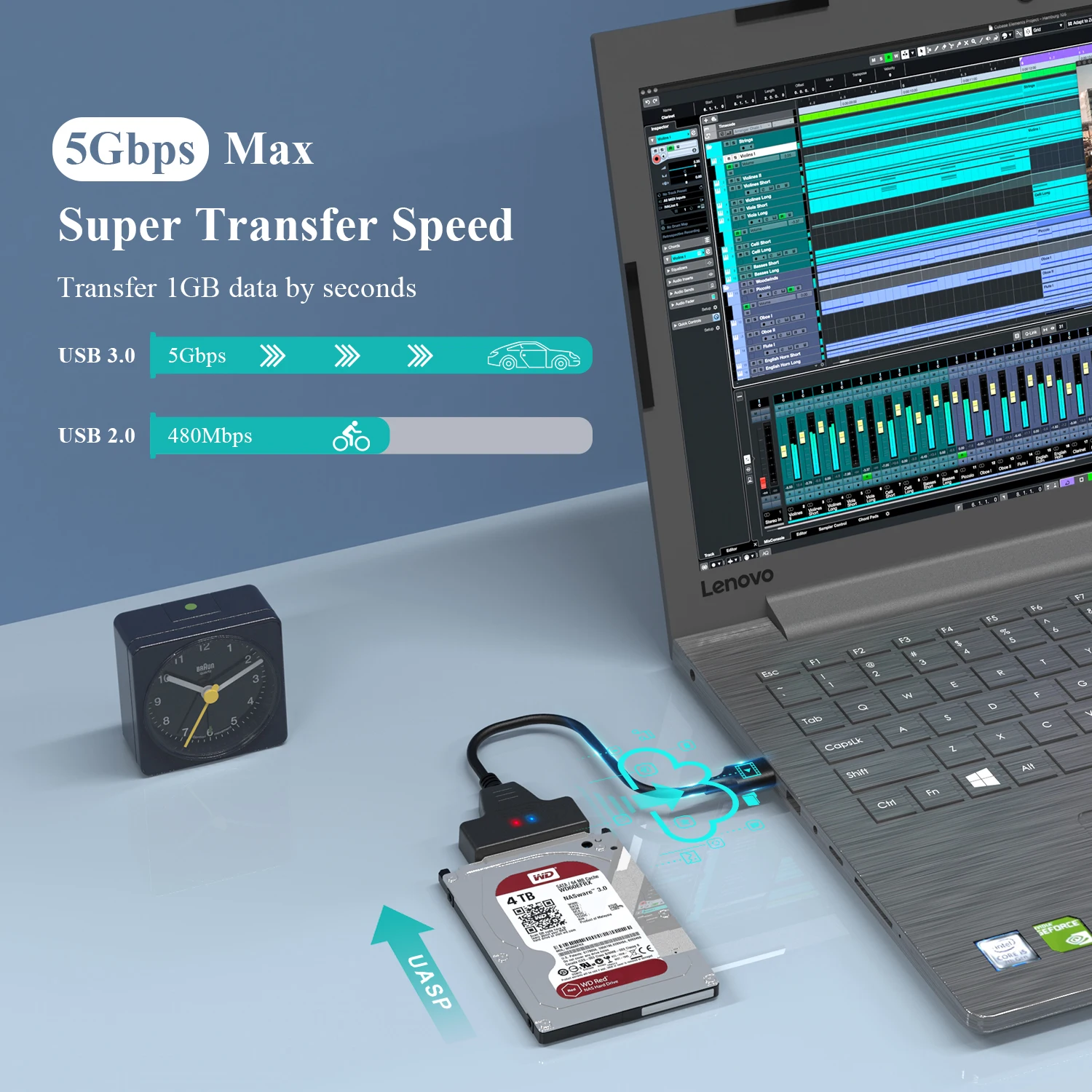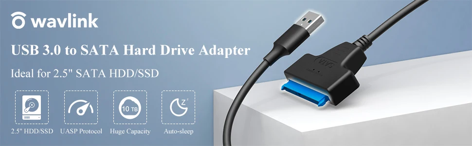 Comprar Wavlink-Cable adaptador SATA a USB 3,0, Conector de disco duro SSD y HDD, 5gbps, compatible con transferencia de datos SATA III UASP SSD/HDD