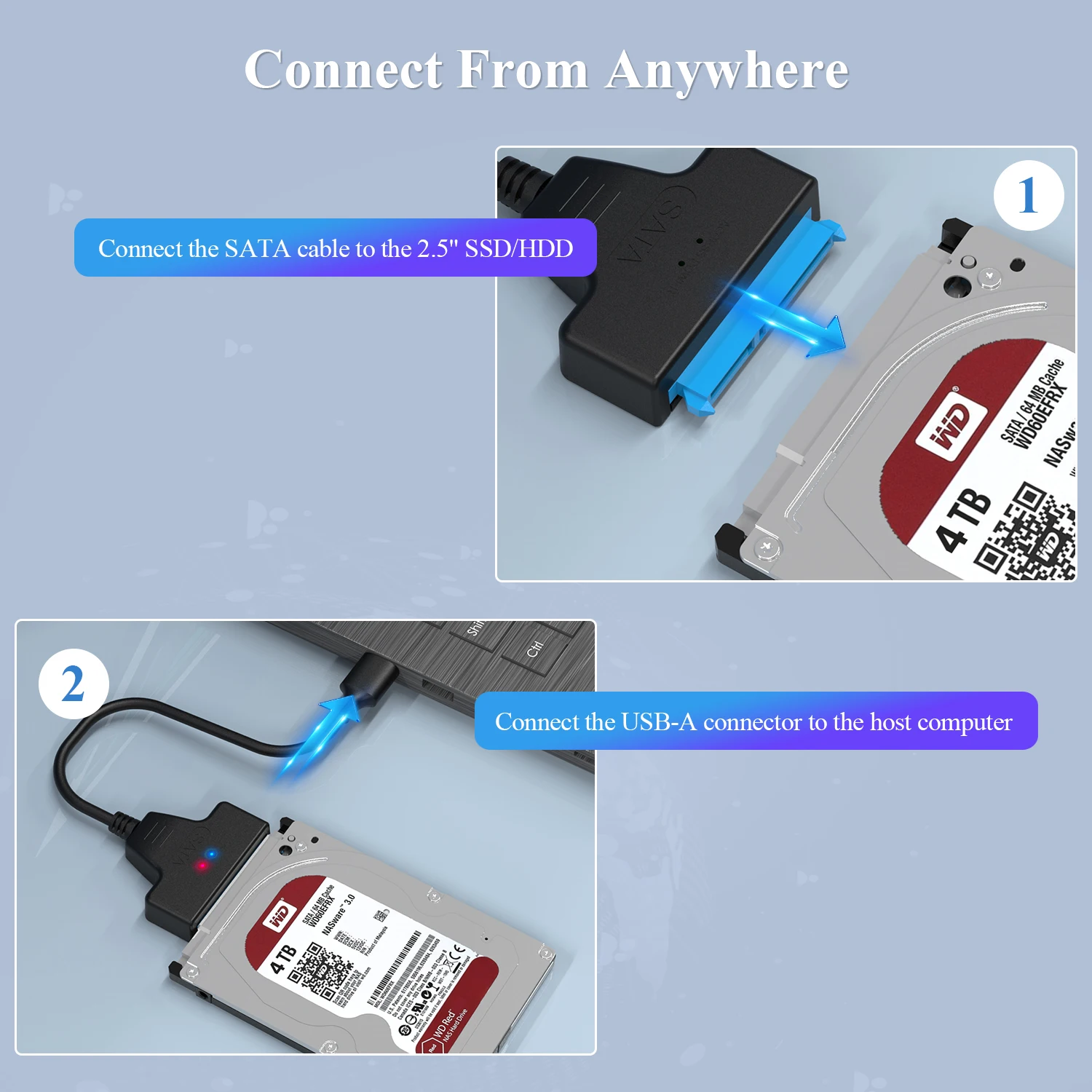 Cable adaptador Wavlink SATA a USB 3,0 para conector de disco duro SSD y HDD de 2,5 "compatible con SATA III UASP