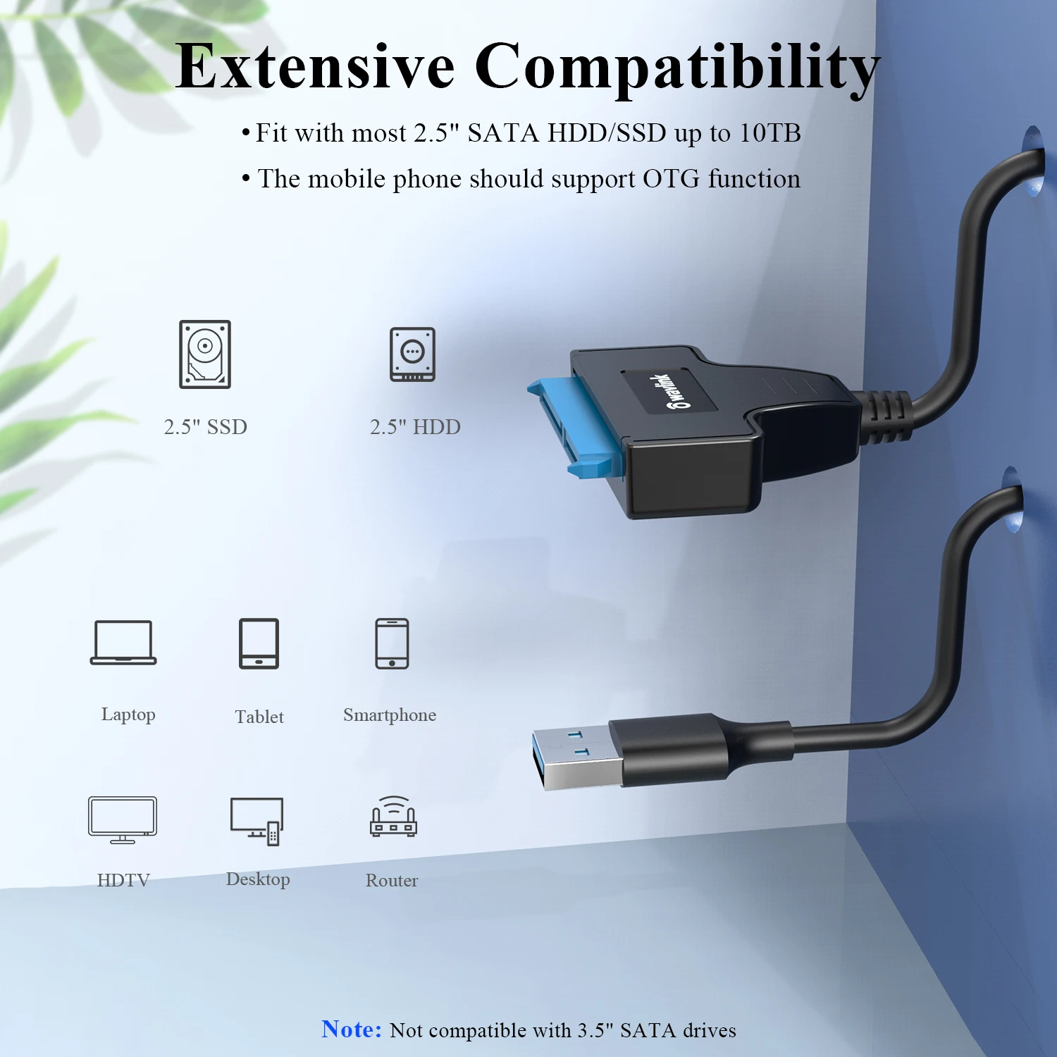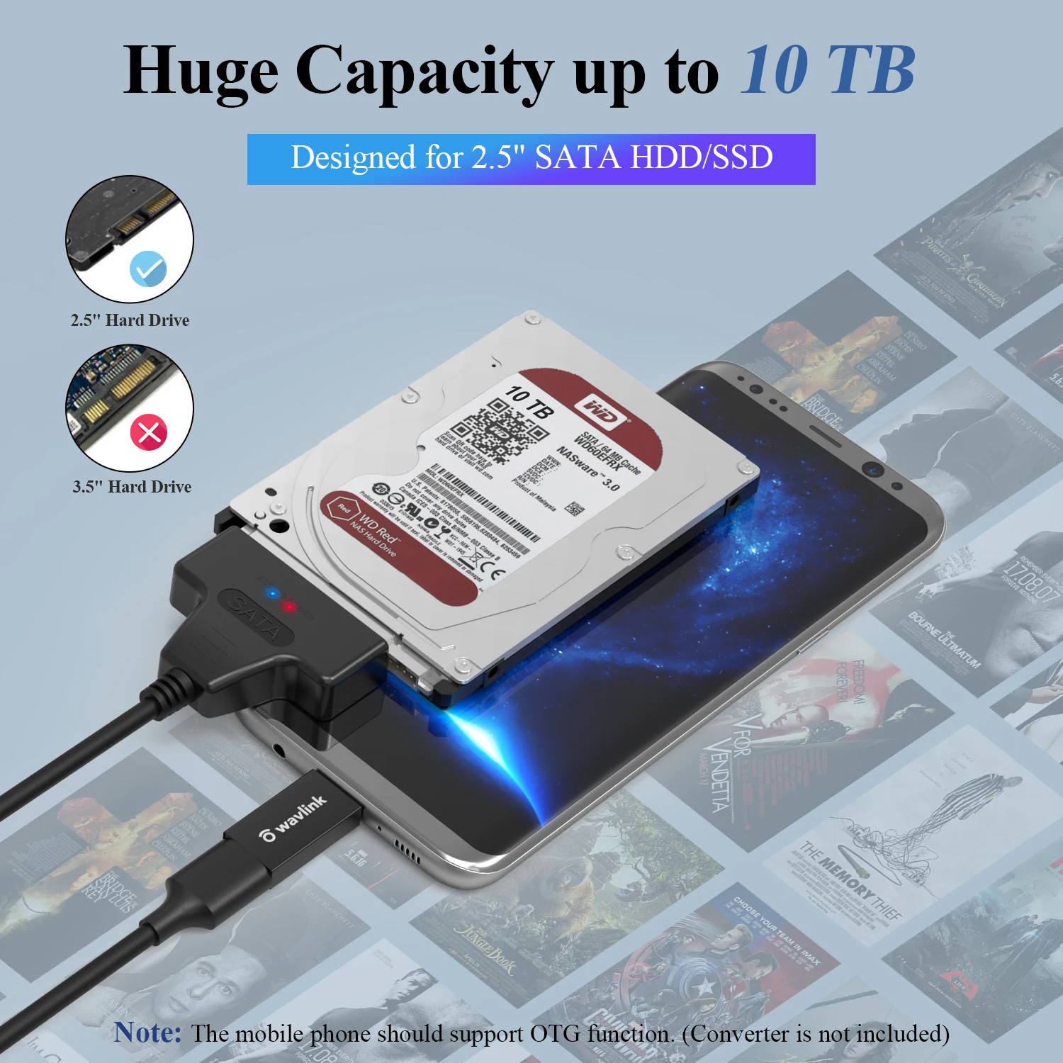Cable adaptador Wavlink SATA a USB 3,0 para conector de disco duro SSD y HDD de 2,5 "compatible con SATA III UASP