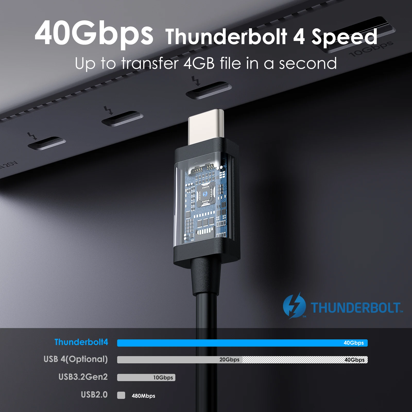 Compatible con dispositivos con pantallas de Puerto Thunderbolt 4/3/, portátiles/tabletas/teléfonos, estaciones de acoplamiento/concentradores, SSD externos, eGPU, etc. Funciona sin esfuerzo con todos los dispositivos USB 3,2 Gen 2/1, 2,0 tipo C.