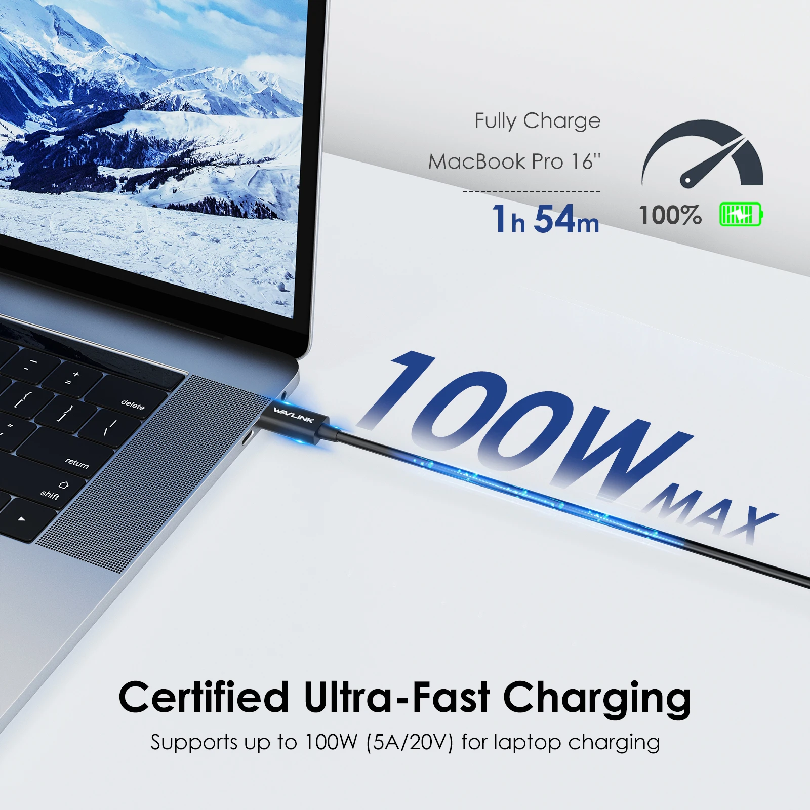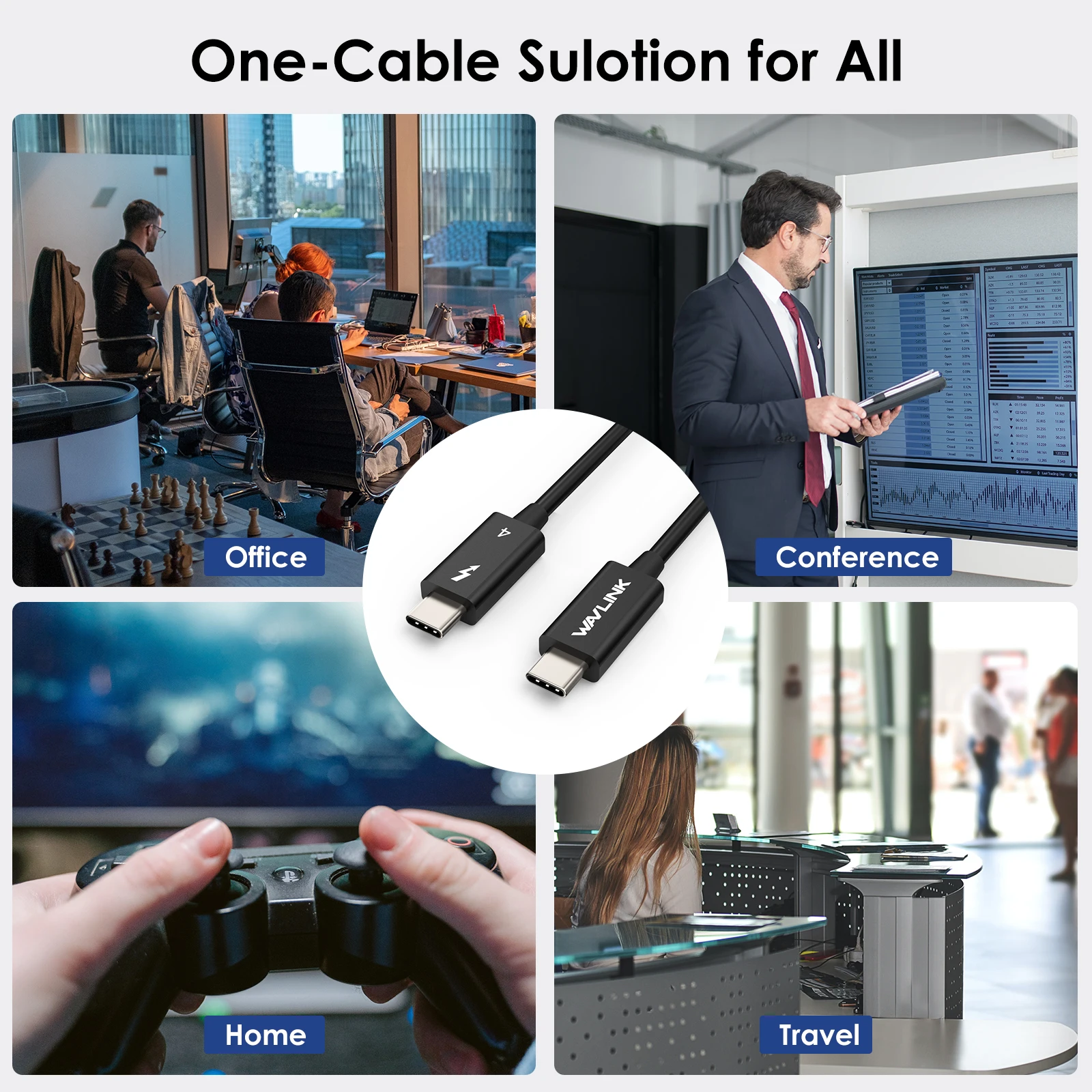 WAVLINK Thunderbolt 4 Cable 40Gbps Transferencia de datos, 2,3 FT Cable de video de 100, compatible con pantalla individual 8K/Dual 4K y carga de 2022 W para MacBook Pro/Air, iPad, Dock, SSD externos, eGPU y más