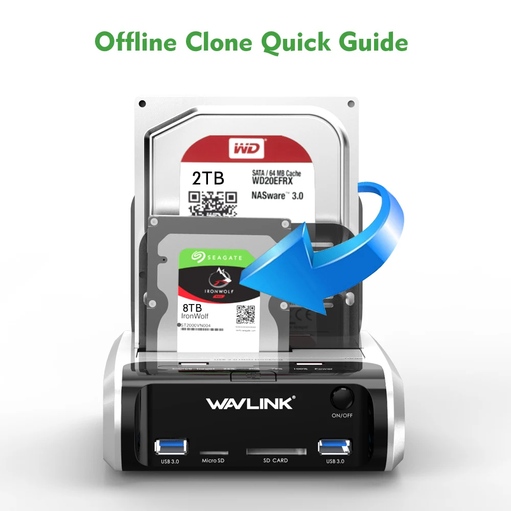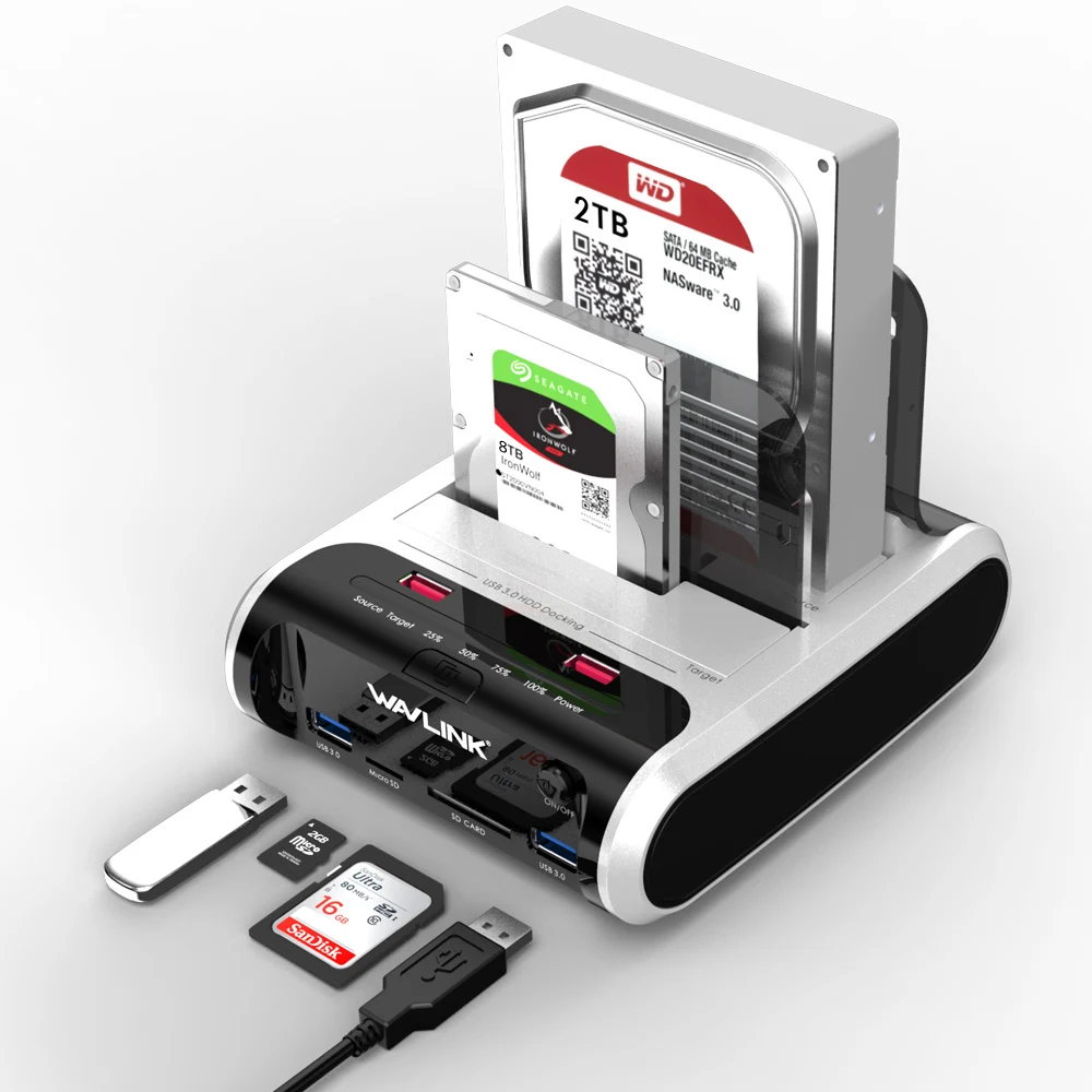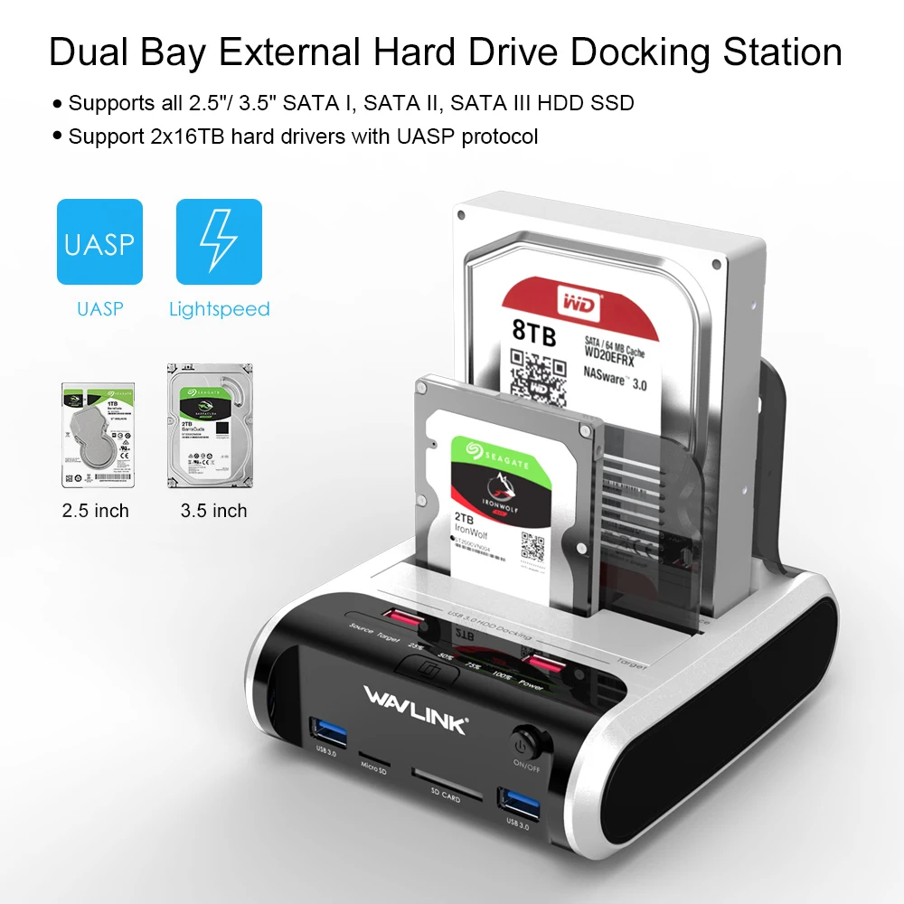 Comprar Wavlink-carcasa de disco duro USB 3,0 a SATA, estación de acoplamiento, HDD, clon sin conexión y UASP para HDD SSD de 2,5 "y 3,5"