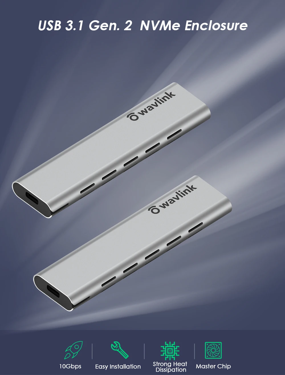 Comprar Wavlink-carcasa SSD M2 NVMe, carcasa USB 3,1 Gen 2 (10G) A NVMe PCI-E M2, compatible con UASP para NVMe SSD, tamaño 2230/2242/2260/2280