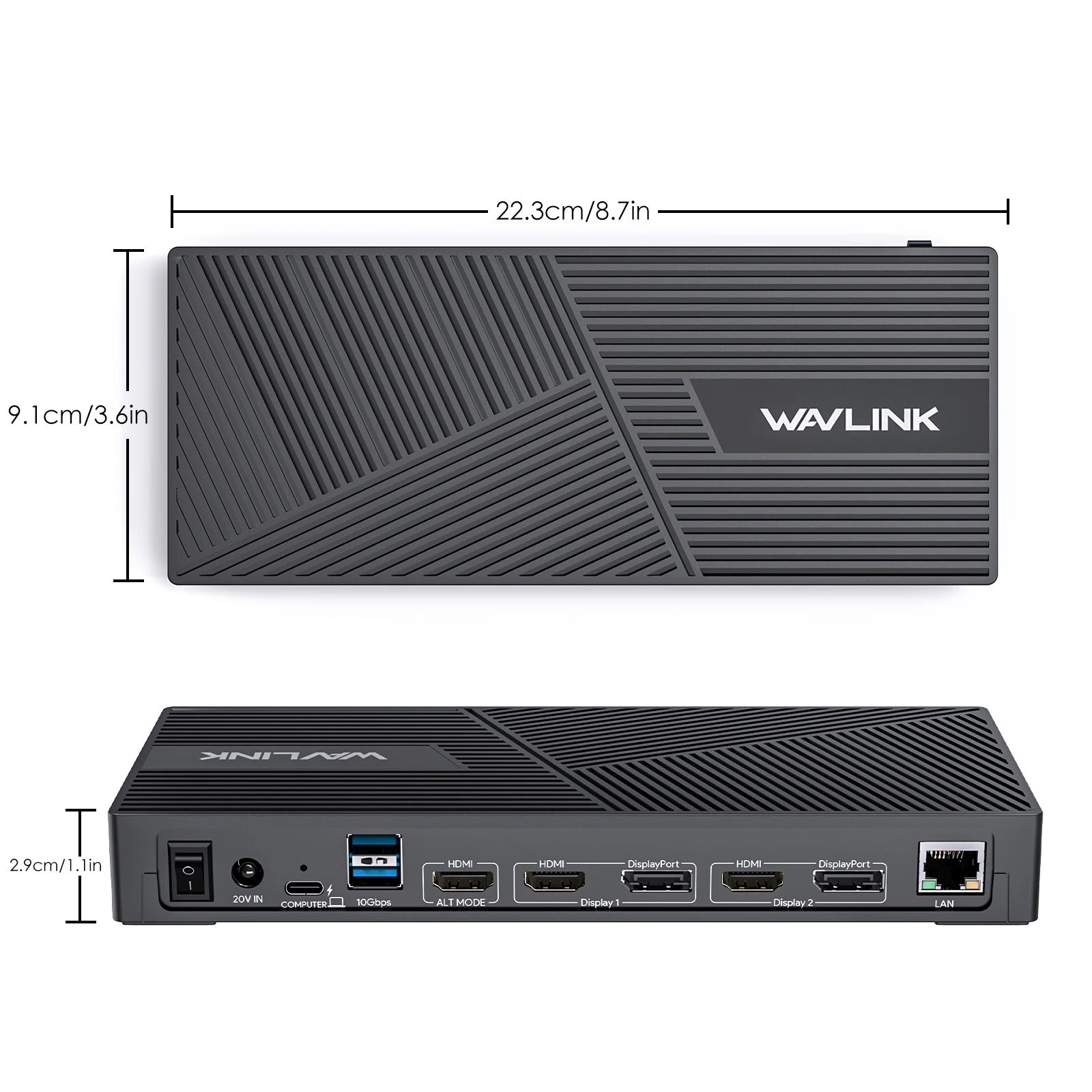 WAVLINK Estación de Acoplamiento de Pantalla Triple 4K, 15-en-1 USB C Universal Laptop Dock Triple Monitores con 3xHDMI, 2xDisplayPort, Carga de Host PD100W, Transferencia de Datos de 10Gbps para Windows/ Mac OS