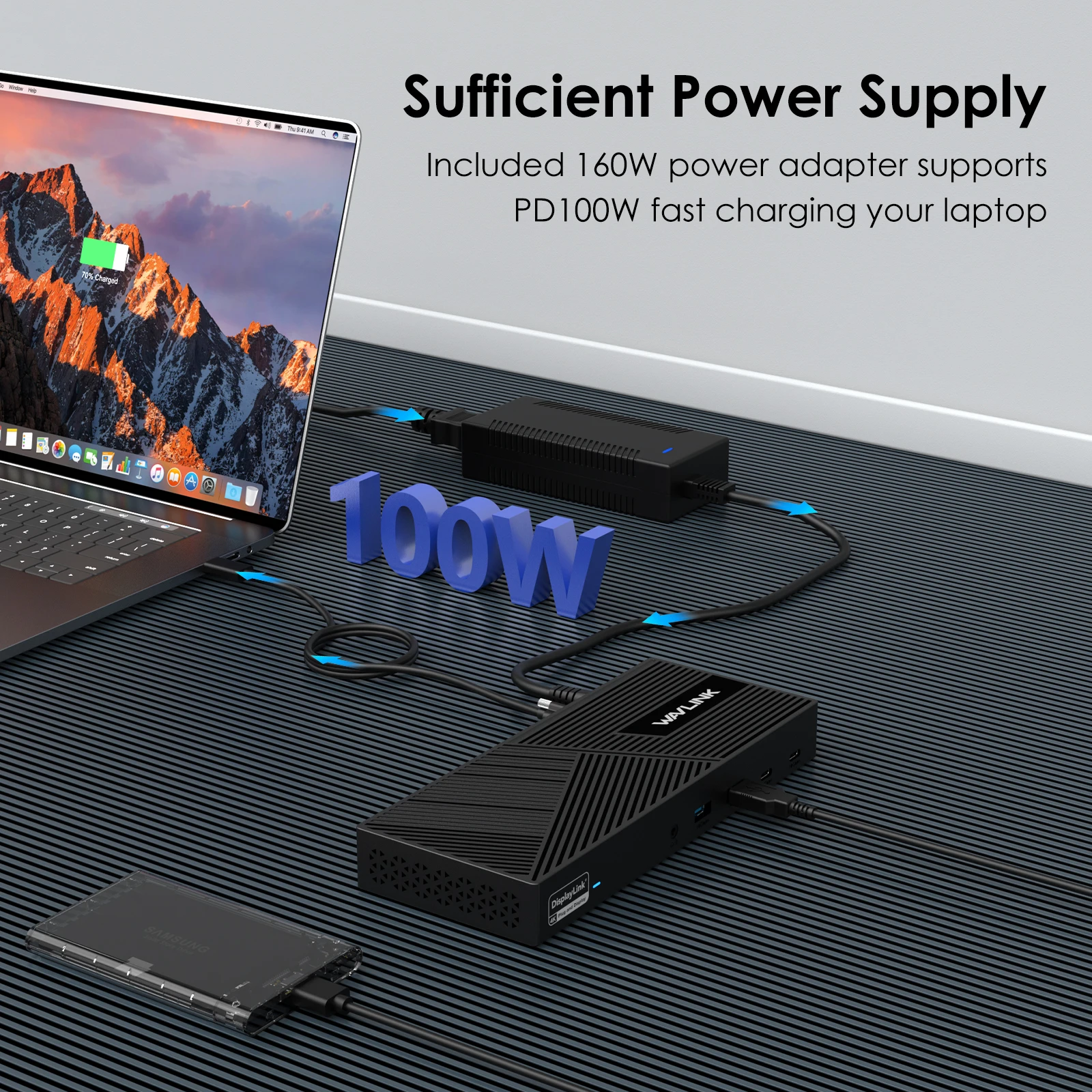 Estación de acoplamiento Wavlink 12 en 1 Triple 4K Ultra HD con puertos duales DP/HDMI y carga PD de 130W