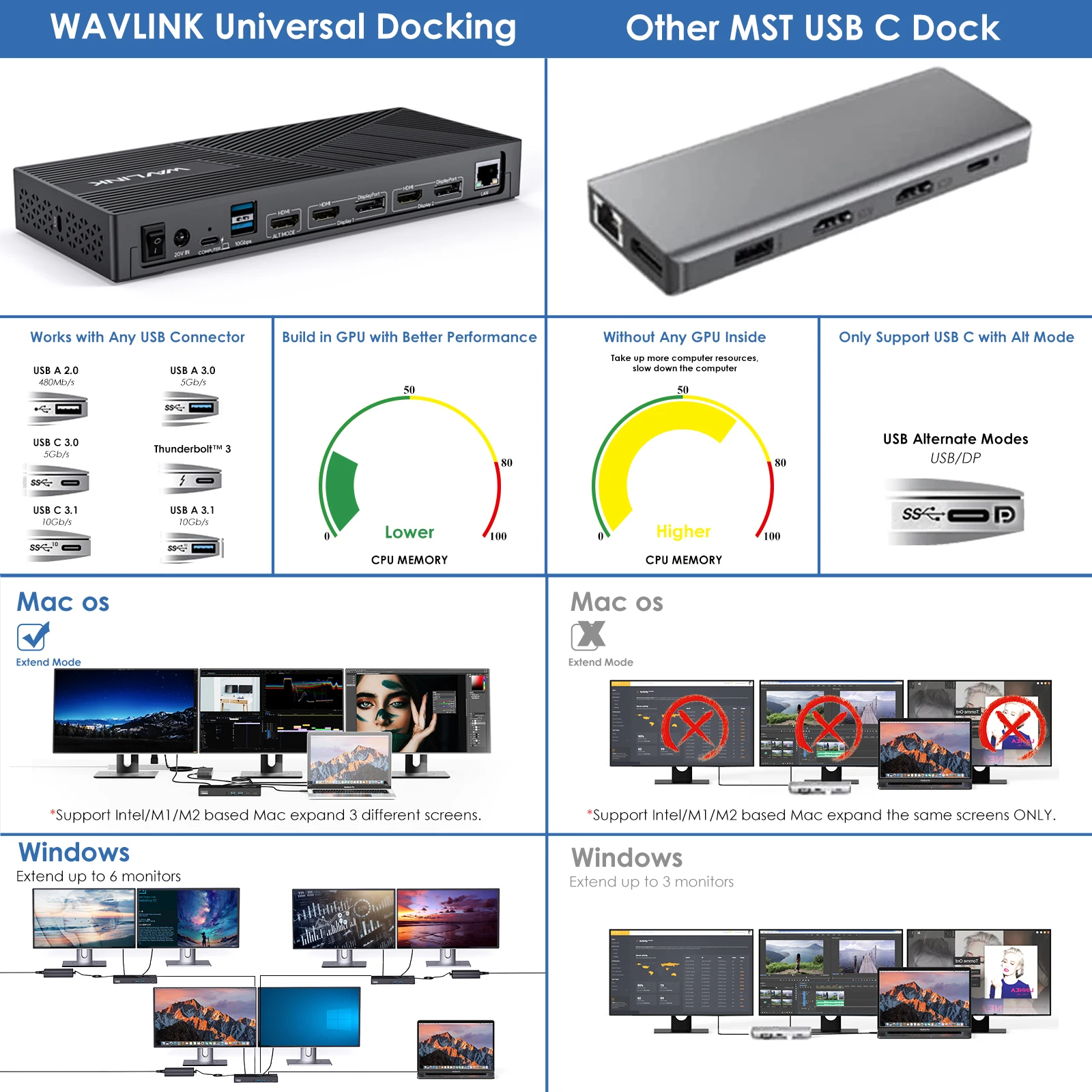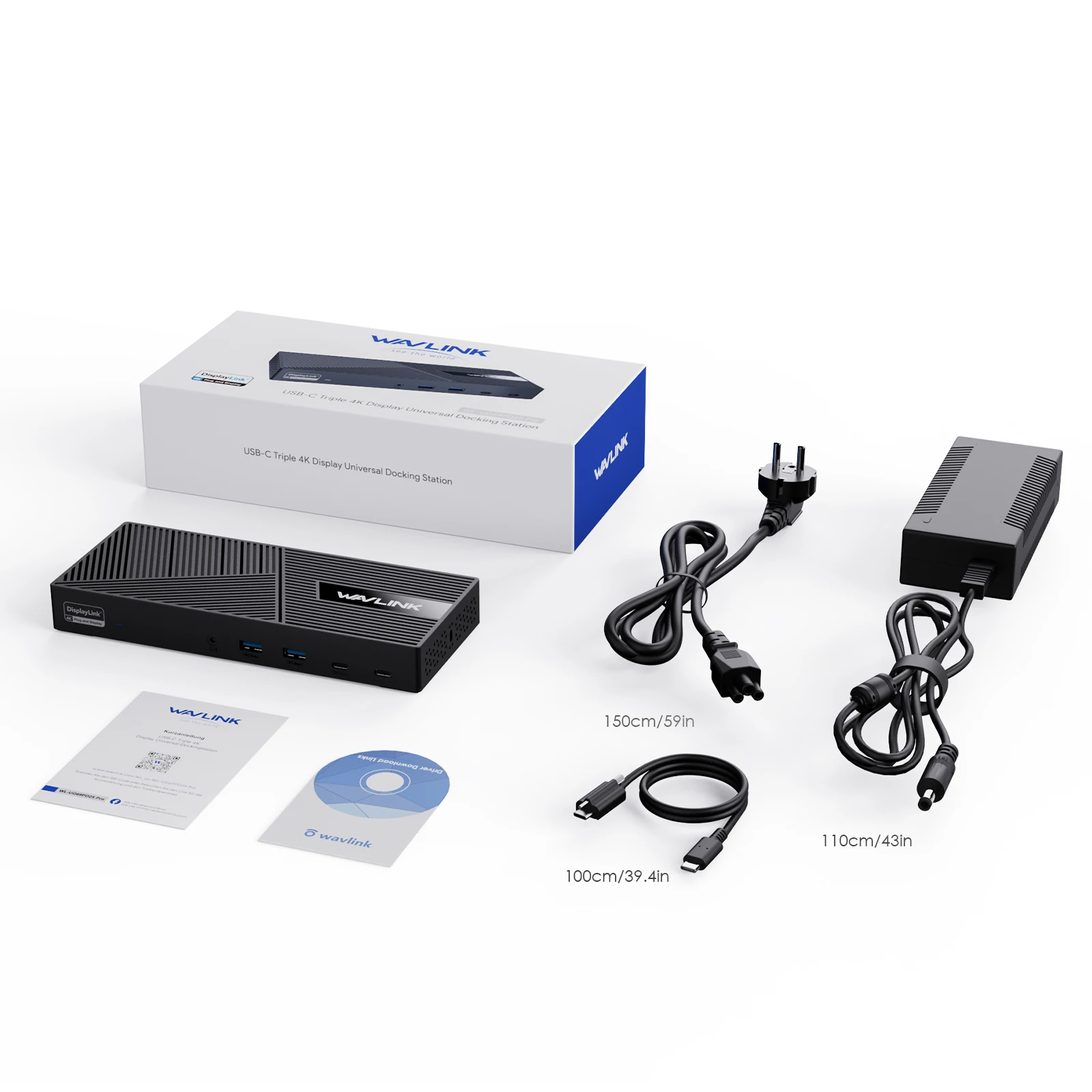 Estación de acoplamiento WAVLINK Triple 4K Display Displaylink, All-In-1 USB C Universal Laptop Dock Triple Monitores con HDMI/DisplayPort, PD 130W/100W Host Charging, transferencia DE DATOS DE 10Gbps para Windows/ Mac OS (también compatible con Mac M1 M2)