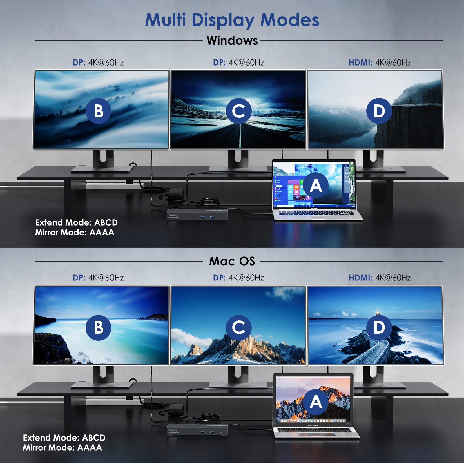 Comprar Wavlink-estación de acoplamiento de pantalla Universal Triple 4K, USB-C, USB 3,0, 3 monitores con puertos HDMI/DP, carga PD de 130W/100W