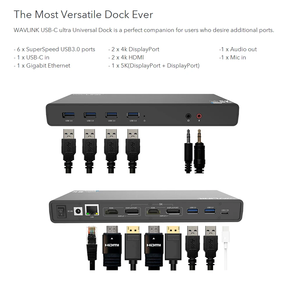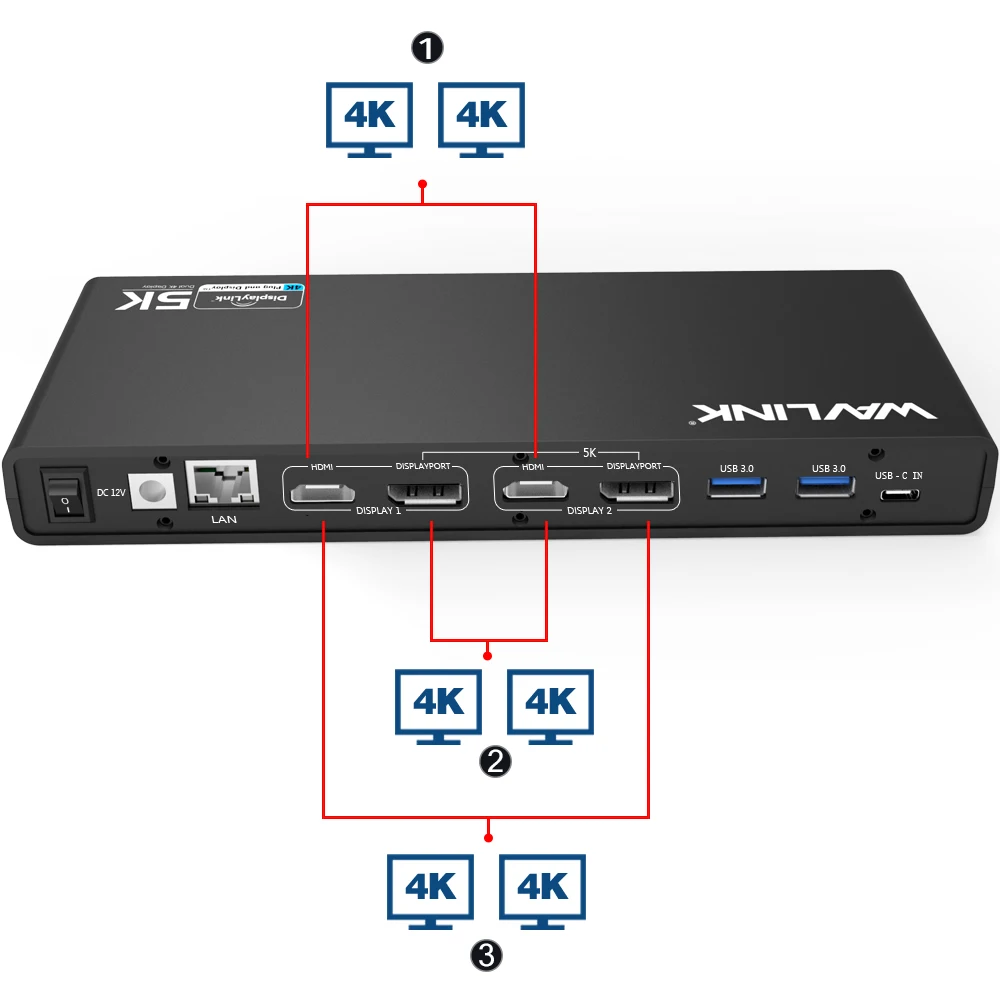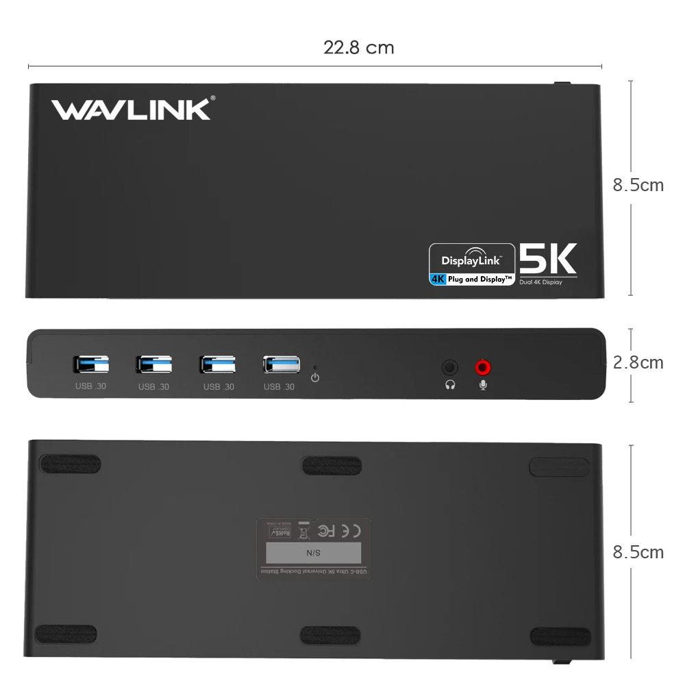 Comprar Wavlink-estación de acoplamiento Universal Displaylink 5K, USB-C, pantalla Dual, USB 3,0, vídeo, Gigabit, Ethernet, HDMIport, para Windows, Mac OS