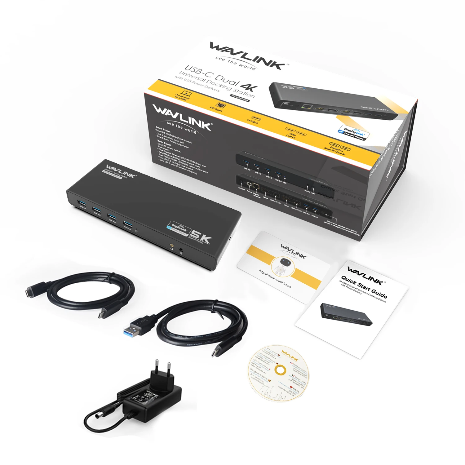 Comprar Wavlink-estación de acoplamiento Universal con entrega de energía, Displaylink Dual 4K, individual 5K, dos puertos de USB-C para Windows y Mac OS