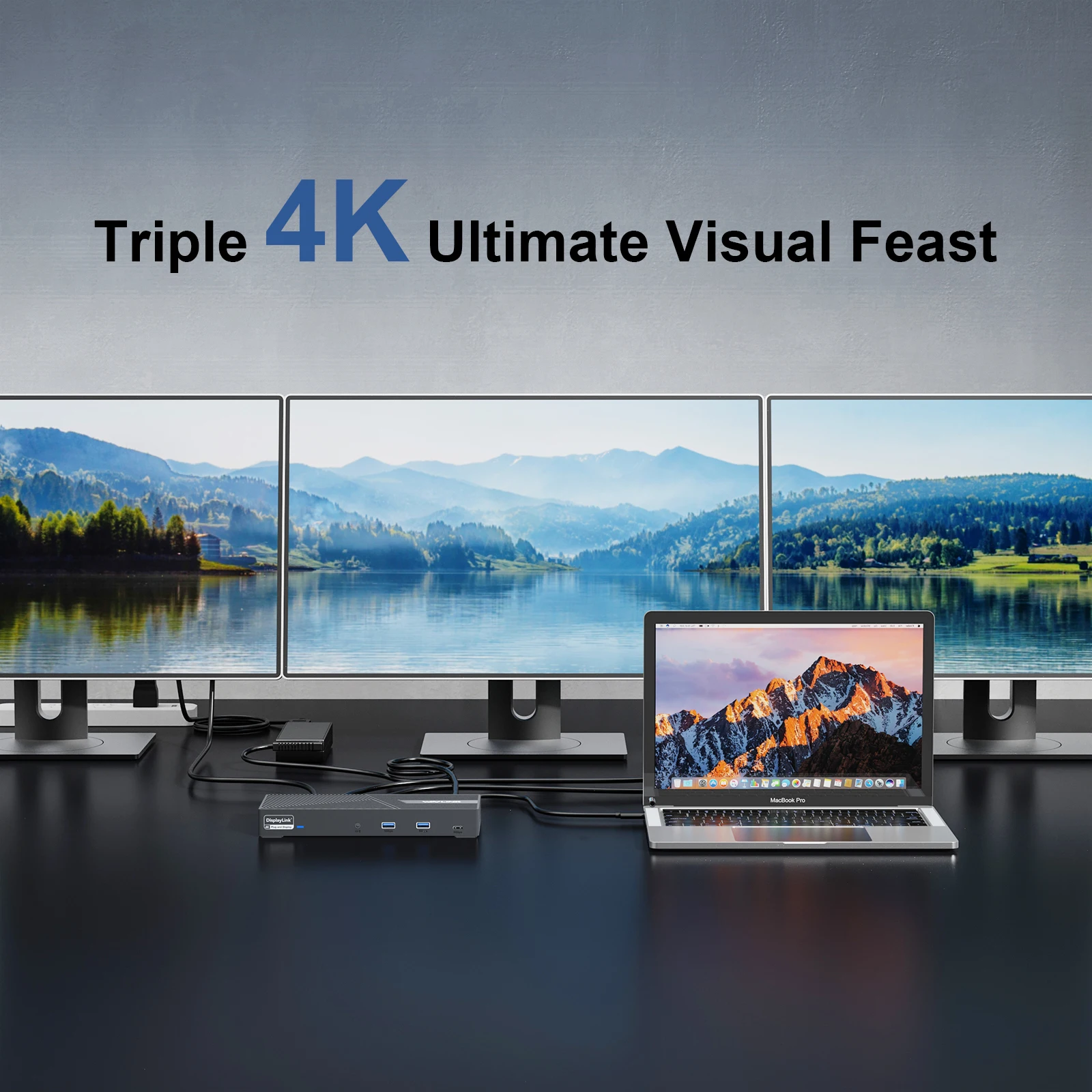 Wavlink Estación de Acoplamiento Universal de Pantalla Triple 4K, 12-IN-1 USB 3,0 Dock Soporta 3 Monitores, con Max 130W PD Entrada, Dual DP, HDMI, 4 * Tipo-A, tipo-C, RJ45, micrófono/audio, para computadora portátil, tableta, teléfono