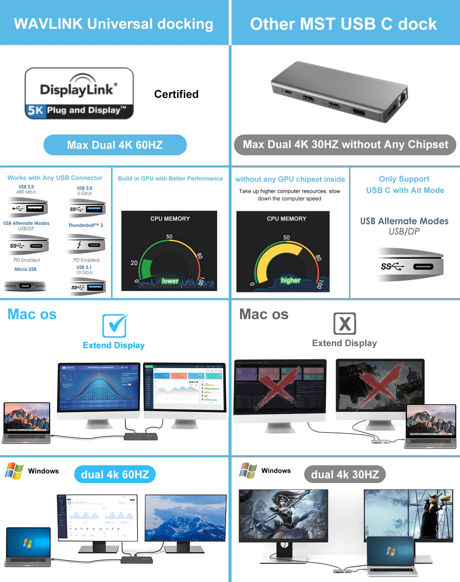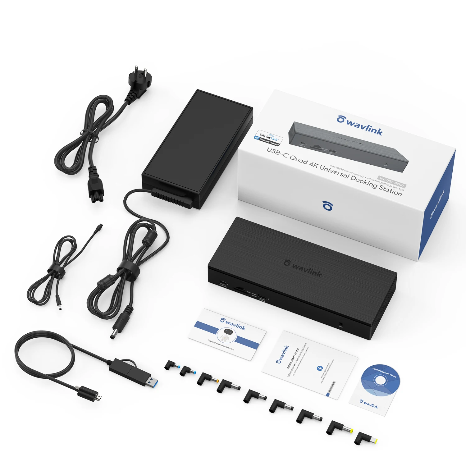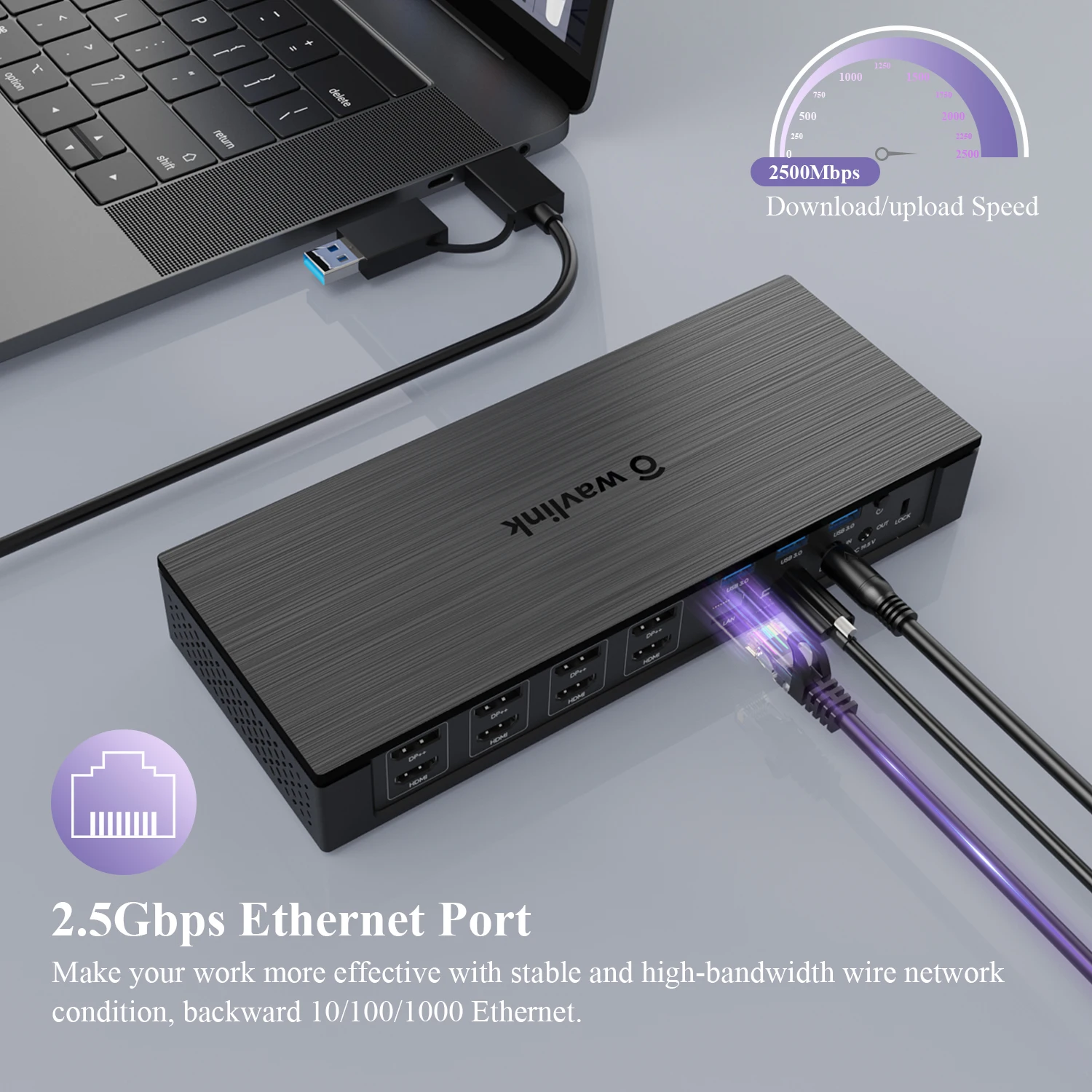 Comprar Wavlink-estación de acoplamiento Universal de nivel empresarial, USB-C Quad 4K @ 60Hz, pantalla Dual 5K @ 60Hz 2,5G Ethernet USB C Dock PD 100W