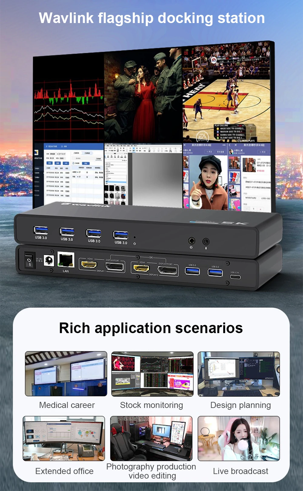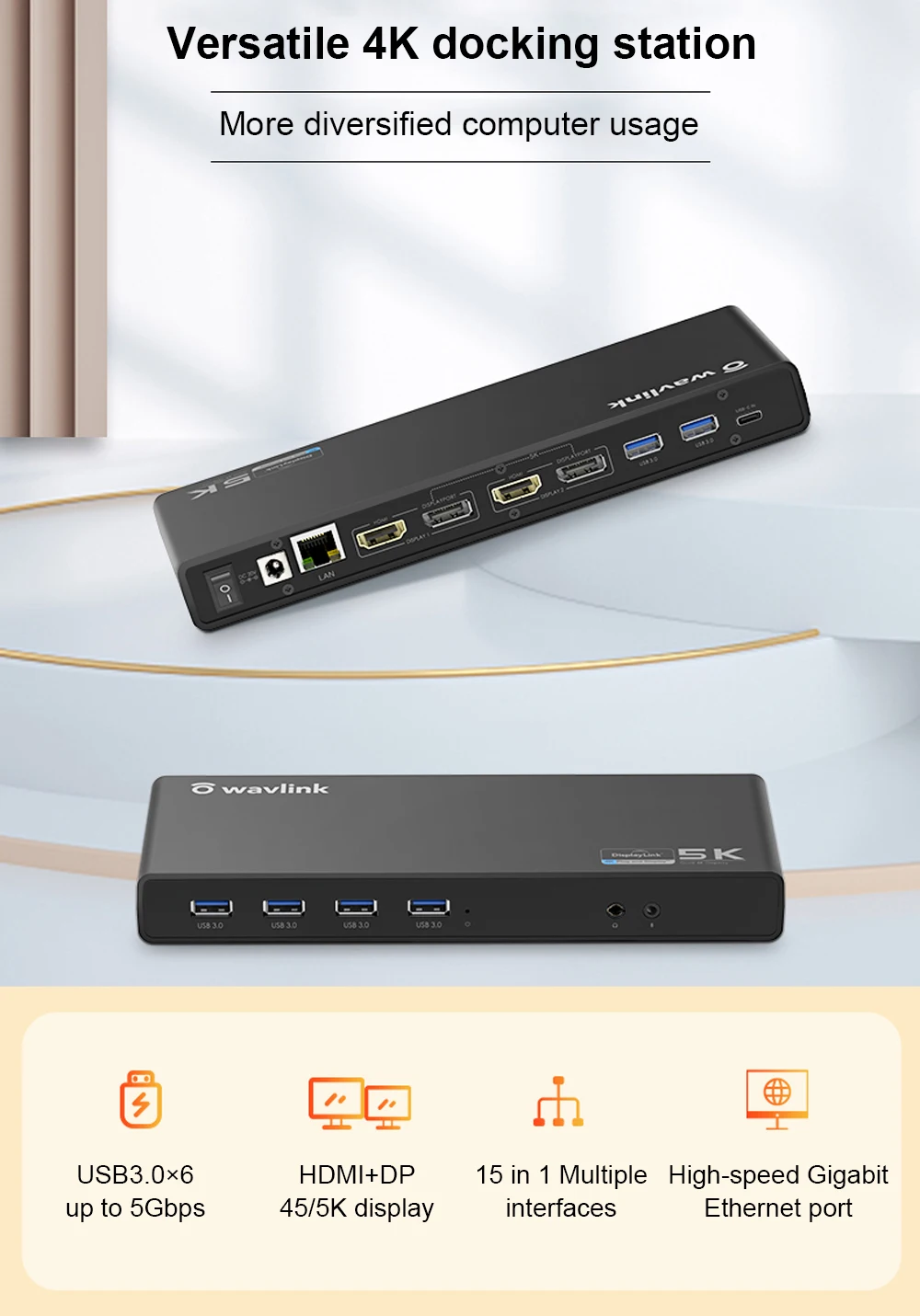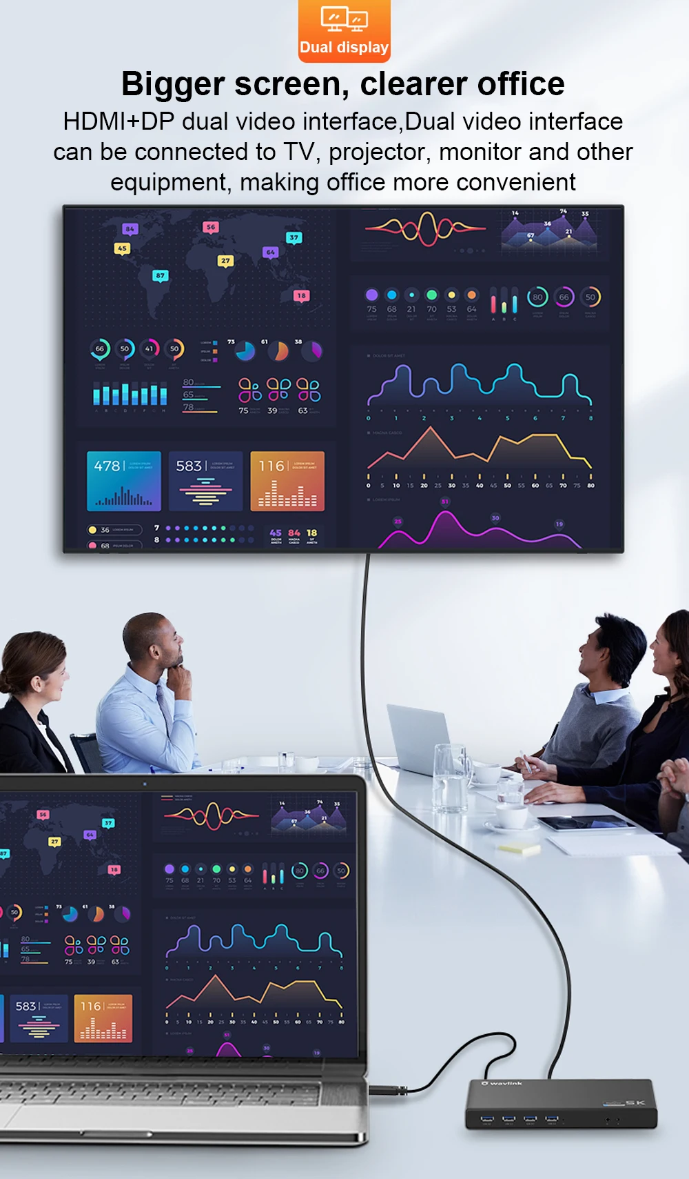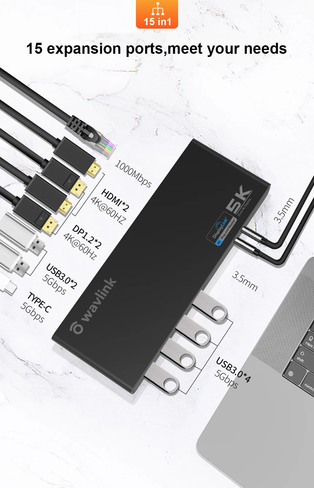 Comprar Wavlink-estación de acoplamiento USB 3,0 Universal, Hub USB C 5K Dual 4K HDMI, Compatible con DP, pantalla múltiple para Windows, Mac OS, ordenador portátil