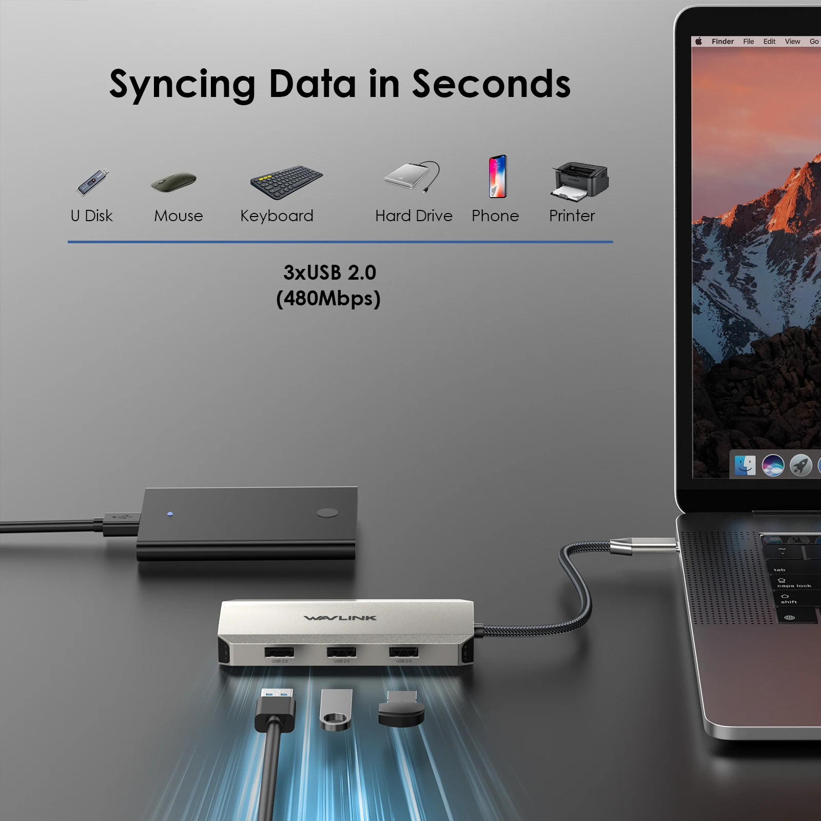 Compatible con una variedad de dispositivos host, incluidos computadoras portátiles, de escritorio, tabletas/teléfonos (con función OTG) y más.Amplíe su conexión con ratones, teclados, impresoras y dispositivos de almacenamiento USB fácilmente.