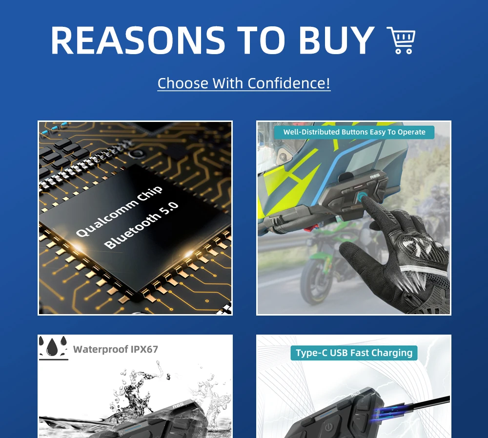 • Resistente al agua :Este interfono de casco es resistente al agua, lo que garantiza su funcionamiento incluso en condiciones climáticas adversas.