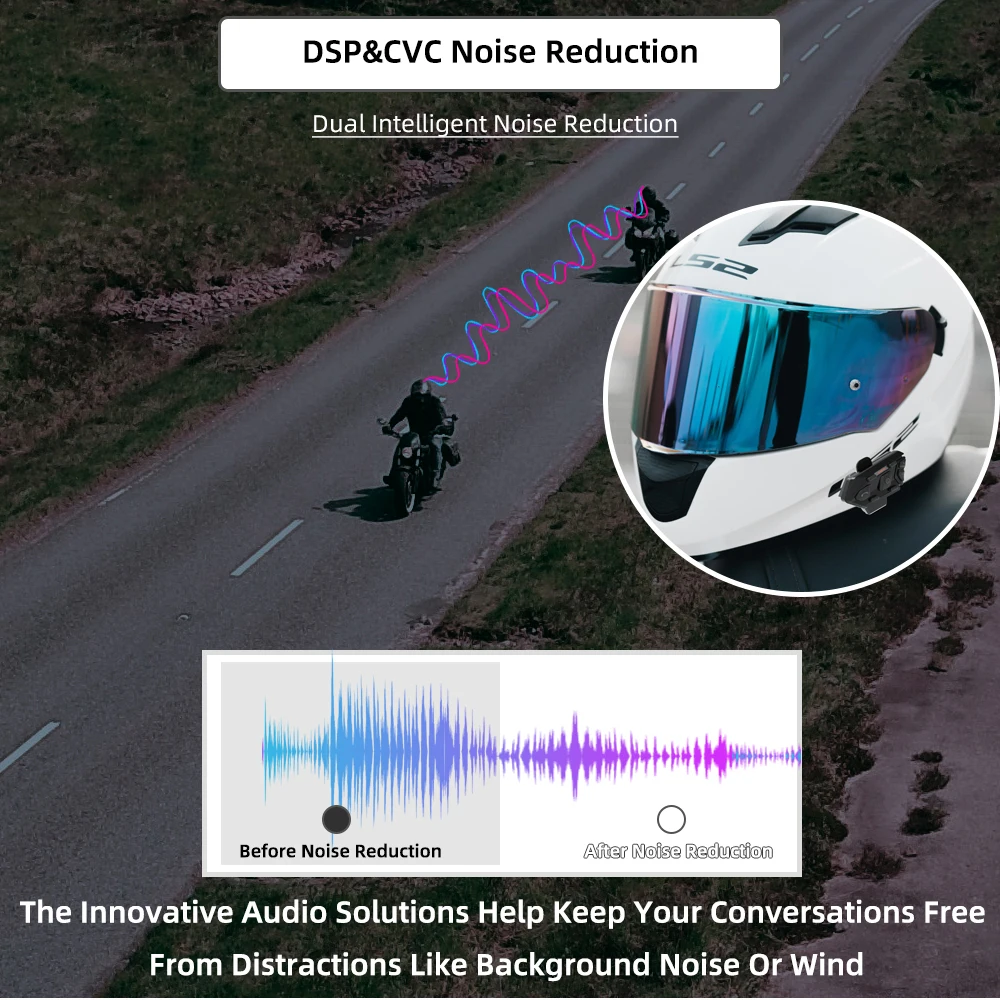 【DSP y CVC REDUCCIÓN DE ruido】: R6S motocicleta auriculares Bluetooth Adoptar tecnología avanzada de reducción de ruido dual, que puede reducir el ruido causado por el motor y el viento en un 80%