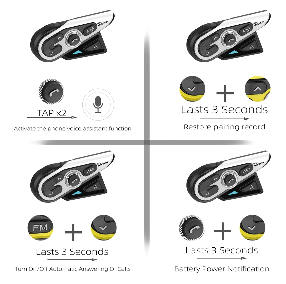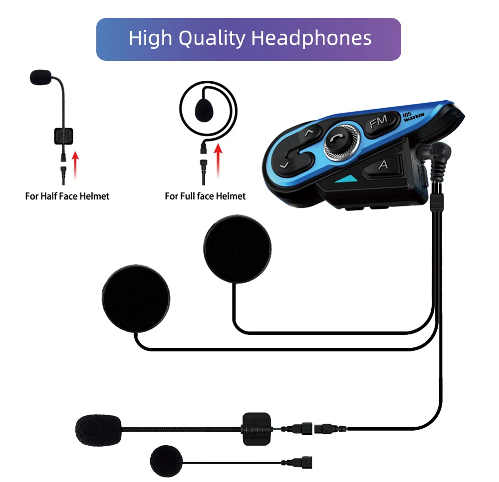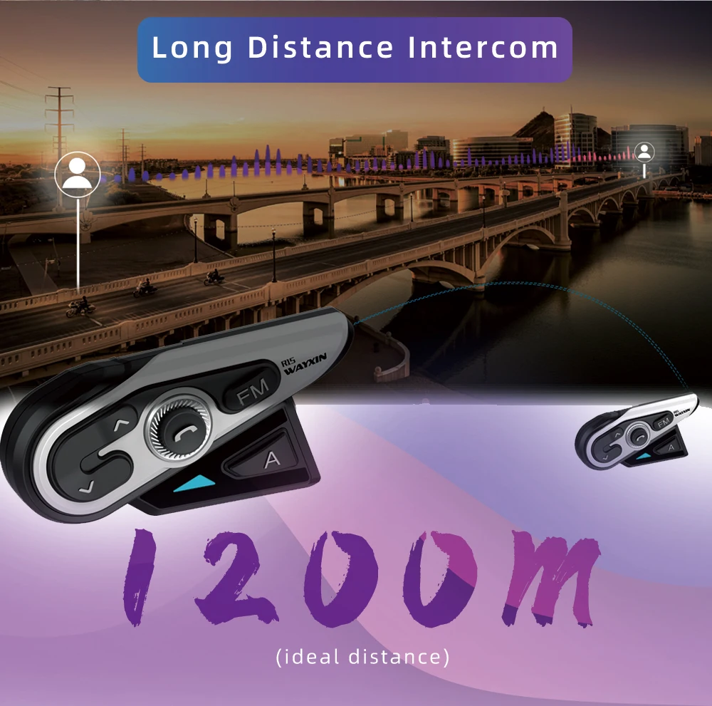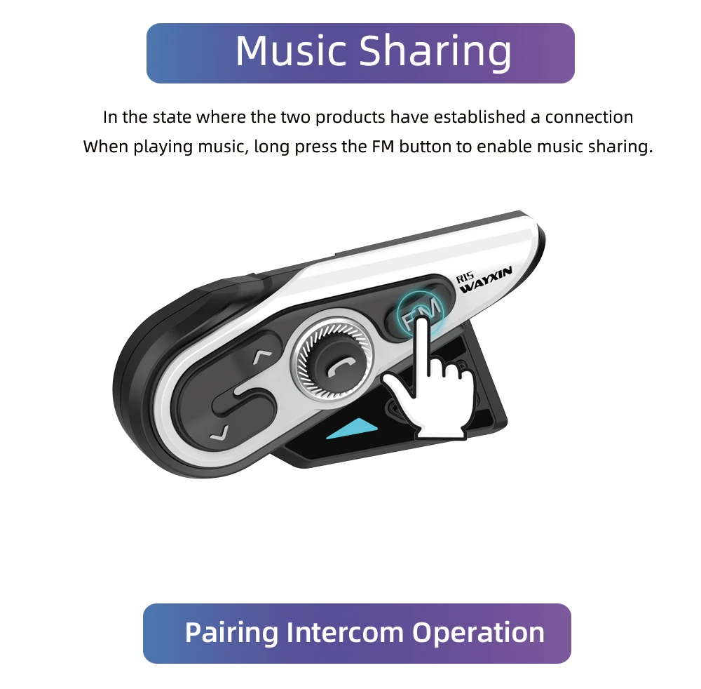 Comprar WAYXIN-Intercomunicador Bluetooth para casco de motocicleta, interfono para 2 conductores, Radio FM, 1200M, para compartir música, R15