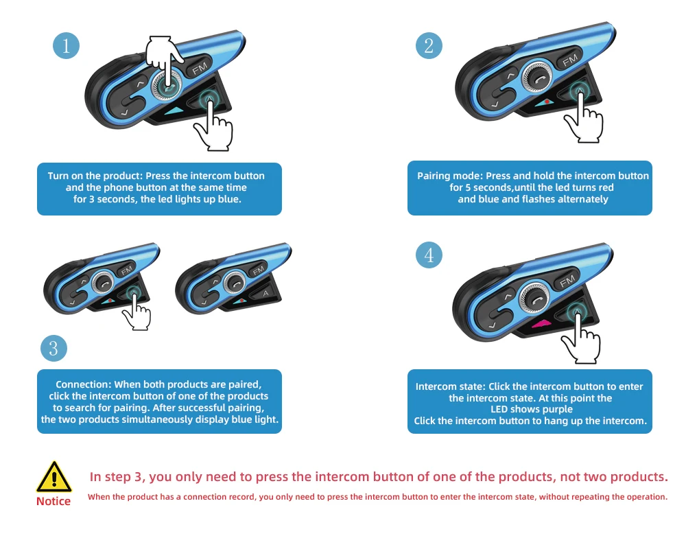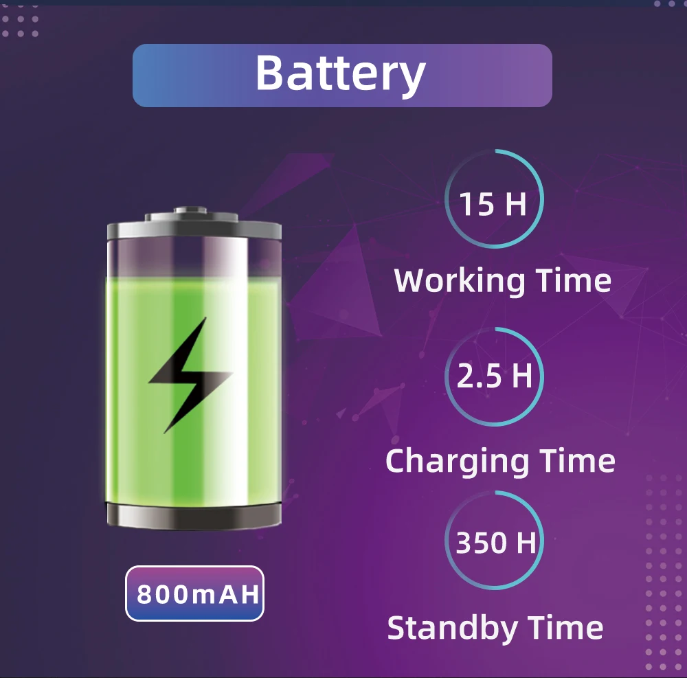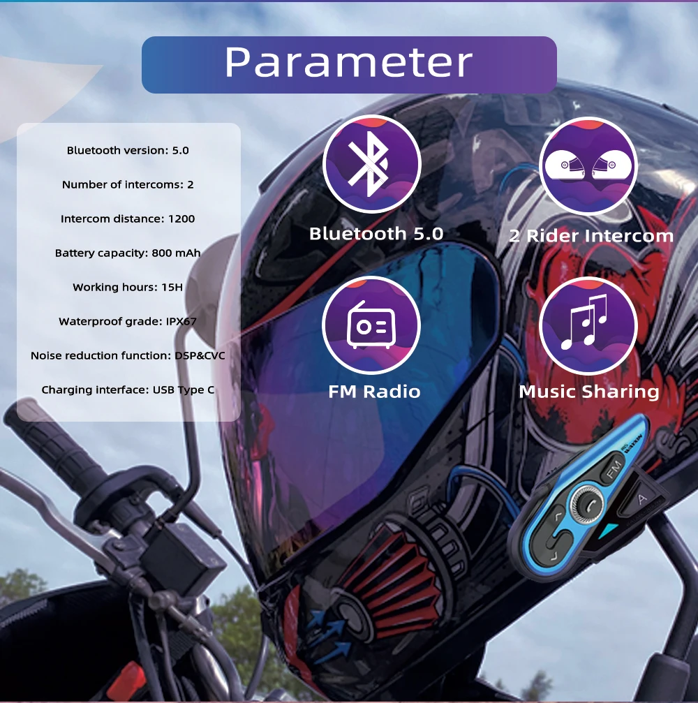 Batería de espera larga: El walkie-talkie de la motocicleta está equipado con una batería de 800 mAh, y el tiempo de espera es de hasta 300H. El tiempo de uso es de hasta 15 horas, carga rápida USB tipo C, completamente cargada en 2 horas.