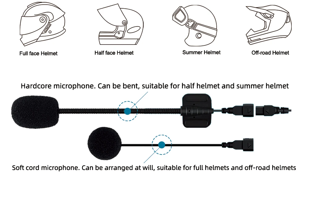 Versión de Bluetooth 5,0: intercomunicador de grupo intercomunicador Bluetooth full-duplex, soporte adecuado para conectar múltiples dispositivos. Usando el auricular manos libres de auriculares configurado, puede garantizar protección y comodidad, escuchar música, rutas GPS y controlar de forma inalámbrica la voz del teléfono móvil a través de Bluetooth.