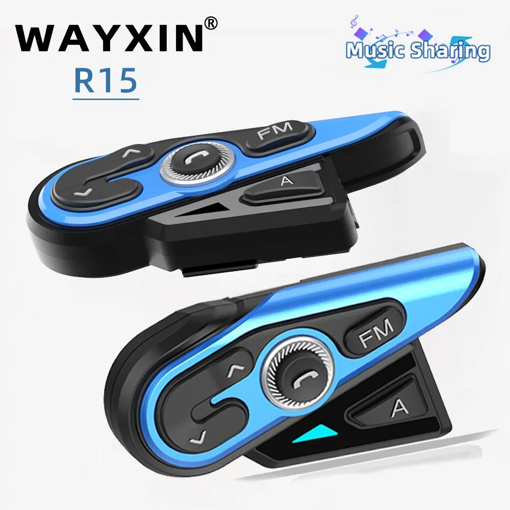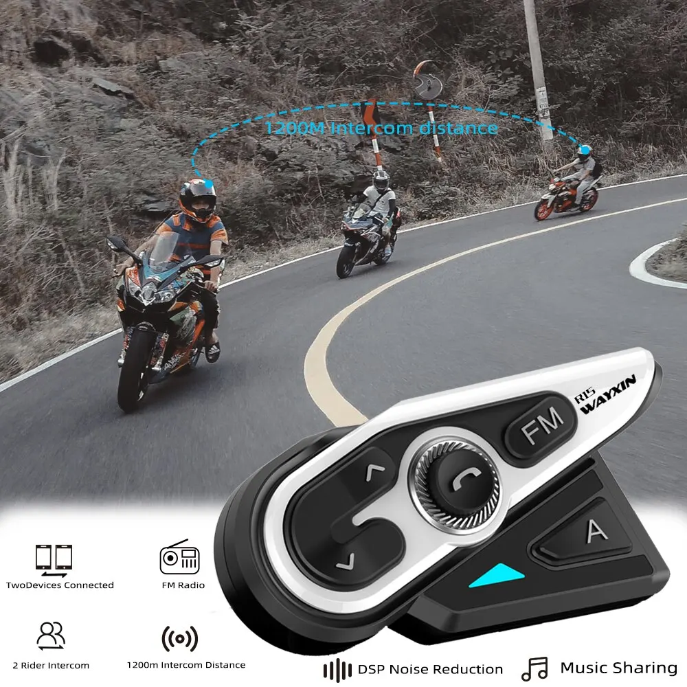 Comprar WAYXIN-Intercomunicador Bluetooth para casco de motocicleta, interfono para 2 conductores, Radio FM, 1200M, para compartir música, R15