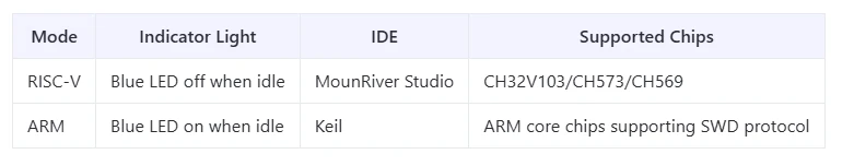 Cuando TX está conectado a GND y la interfaz USB está enchufada, el modo de descarga cambiará automáticamente. La próxima vez que se conecte la interfaz USB, este modo será predeterminado. Desconecte TX y GND después de encender el WCH-Link.