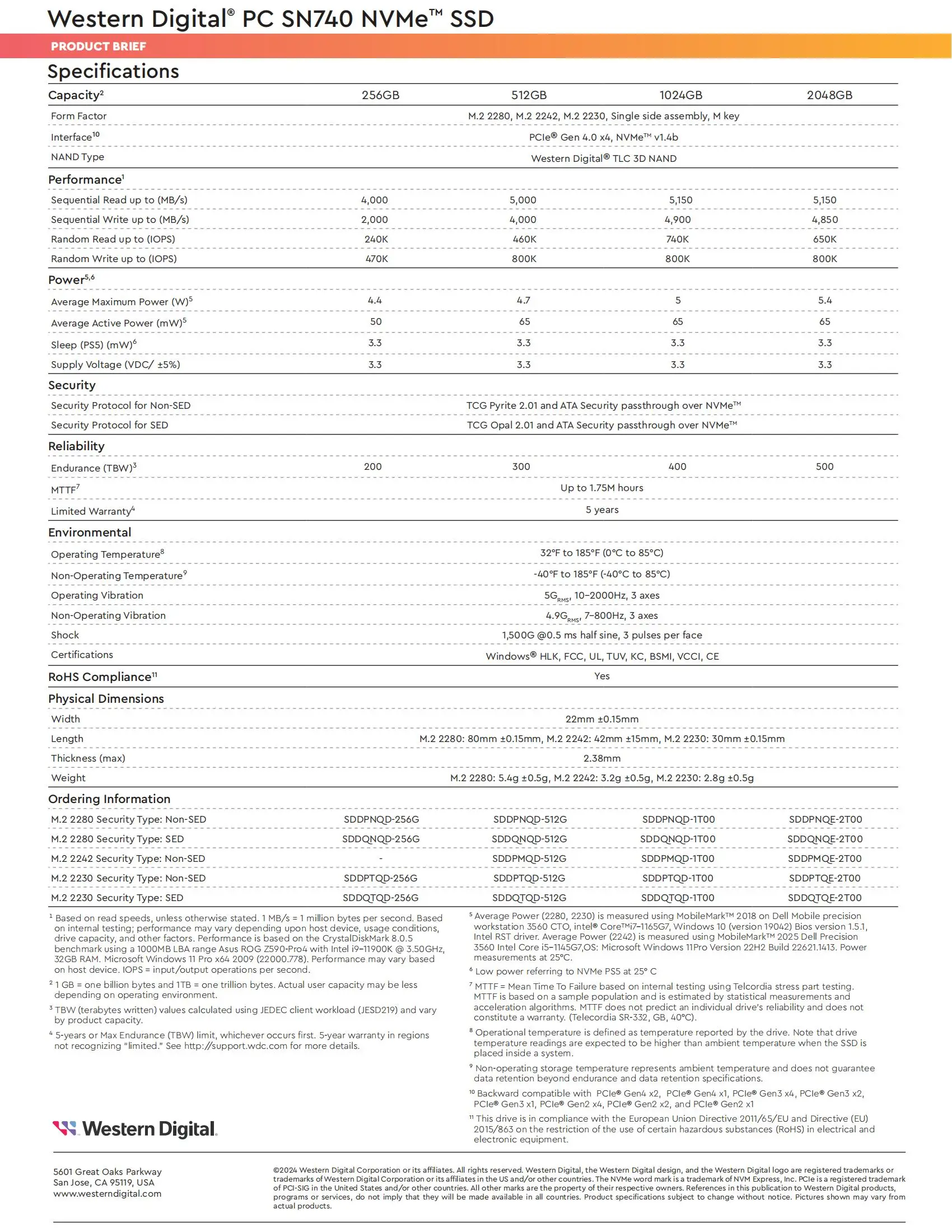 • Alta capacidad de almacenamiento: El SSD Western Digital WD SN740 de 2 TB ofrece un amplio espacio de almacenamiento, perfecto para almacenar archivos y aplicaciones grandes.