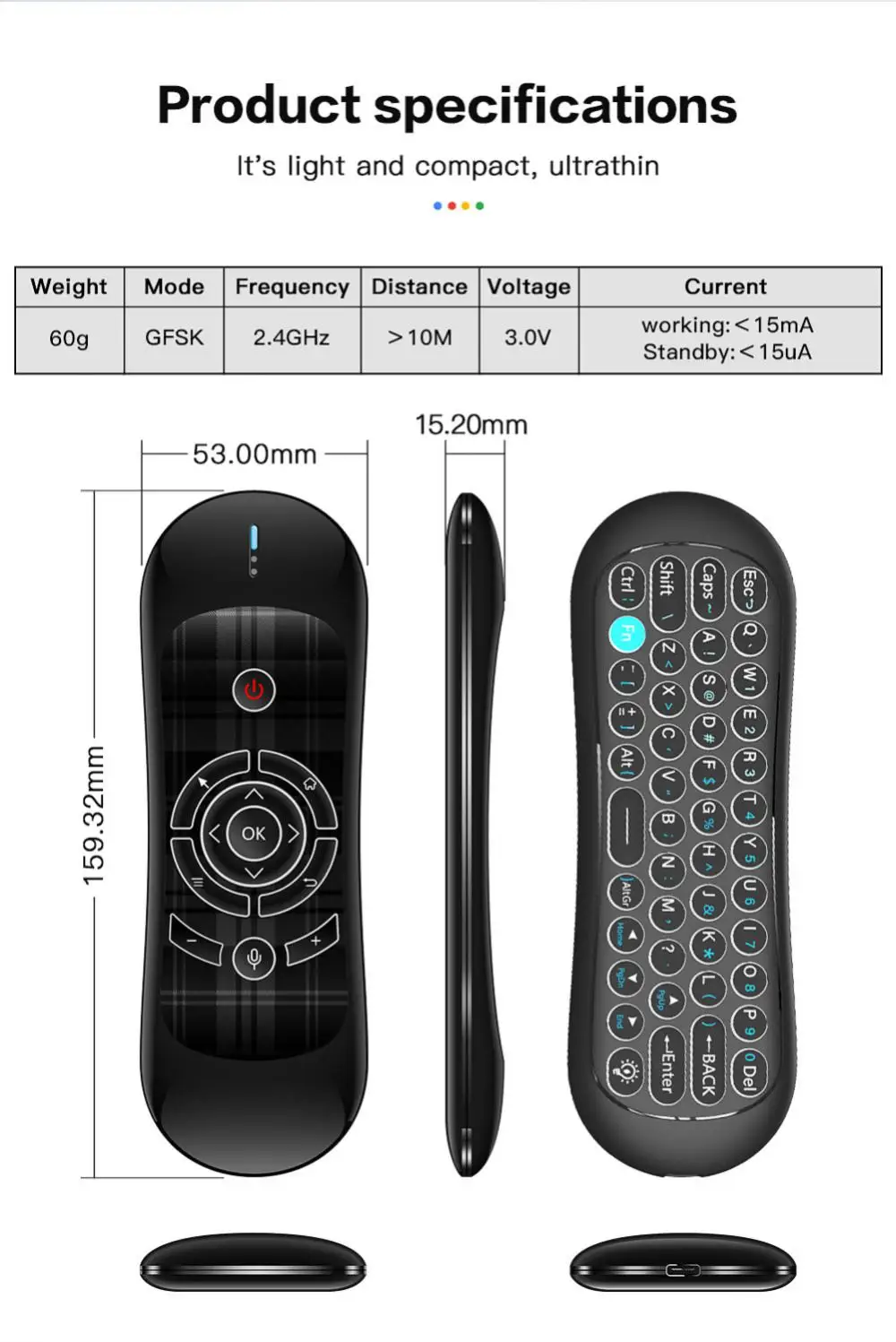 3. Está hecho de material ABS de alta calidad. Y es MINI, ligero y ultrafino.