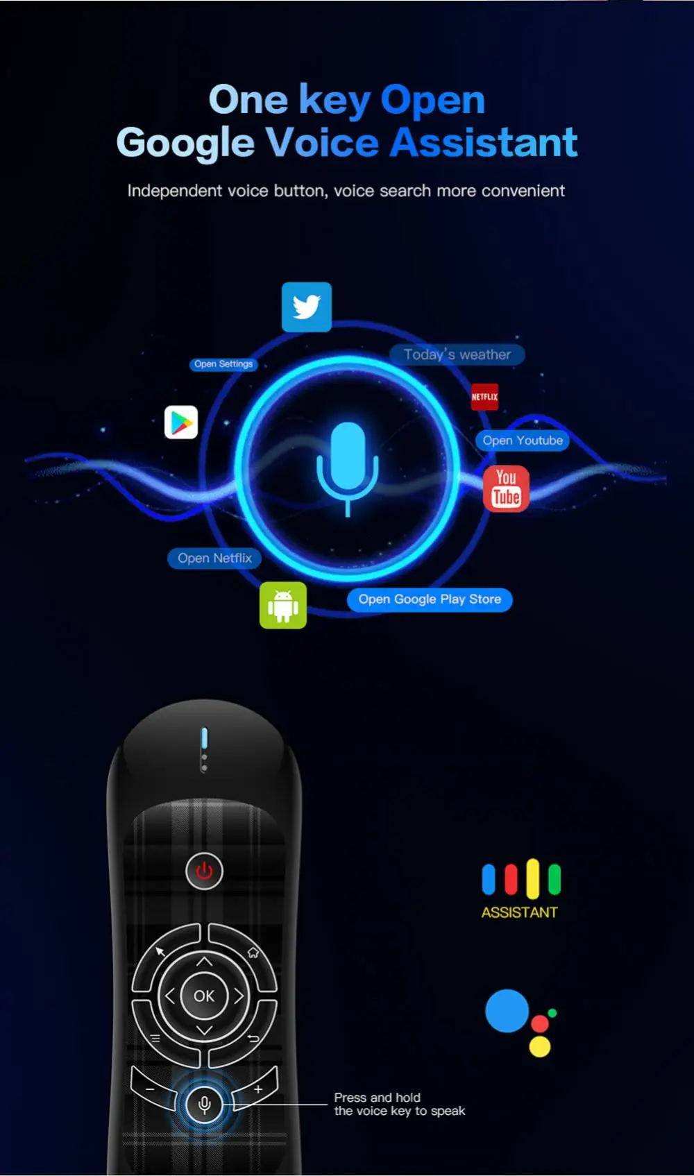 2. El ratón de aire inalámbrico incluye sensor de movimiento, retroiluminación, aprendizaje remoto infrarrojo, asistente de voz, carga rápida y funciones potentes totalmente compatibles.