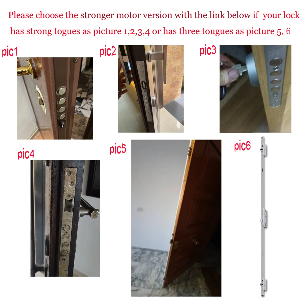3) Si su cerradura tiene 3 lengüetas de bloqueo o lengüetas de bloqueo muy fuertes, utilice la versión de motor fuerte.