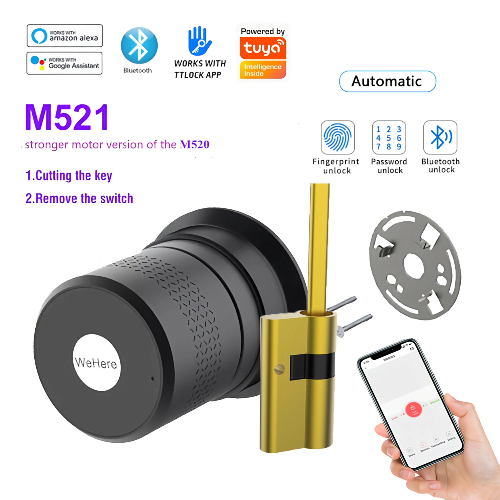 Comprar Wehere M521 Tuya cerradura de puerta inteligente TTlock cilindro de huella digital Bluetooth para 50-100mm de espesor soporte de puerta Alexa Smartlife