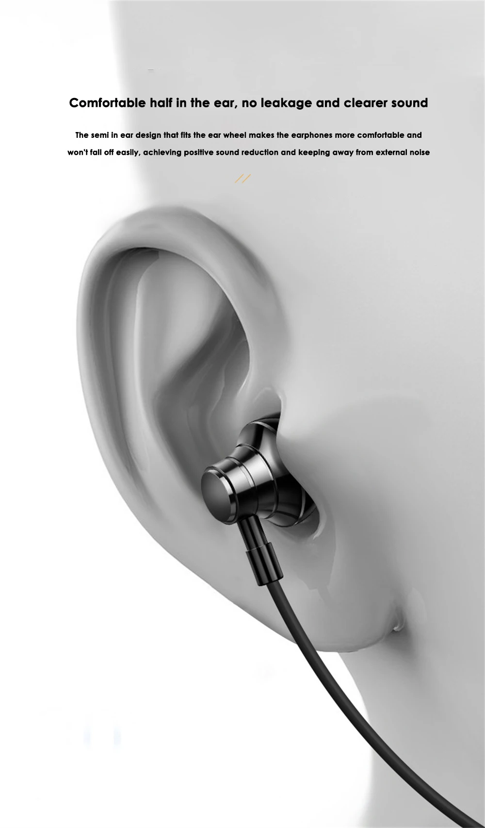 -Cavidad de sonido de metal para mejorar en gran medida la profundidad de la inmersión de graves, estable de alto y rango, alta reproducción de sonido que se ajusta a los contornos del diseño de medio oído, usar auriculares más cómodos no se caerá fácilmente, para lograr aislamiento acústico y reducción de ruido, lejos del ruido del mundo exterior.