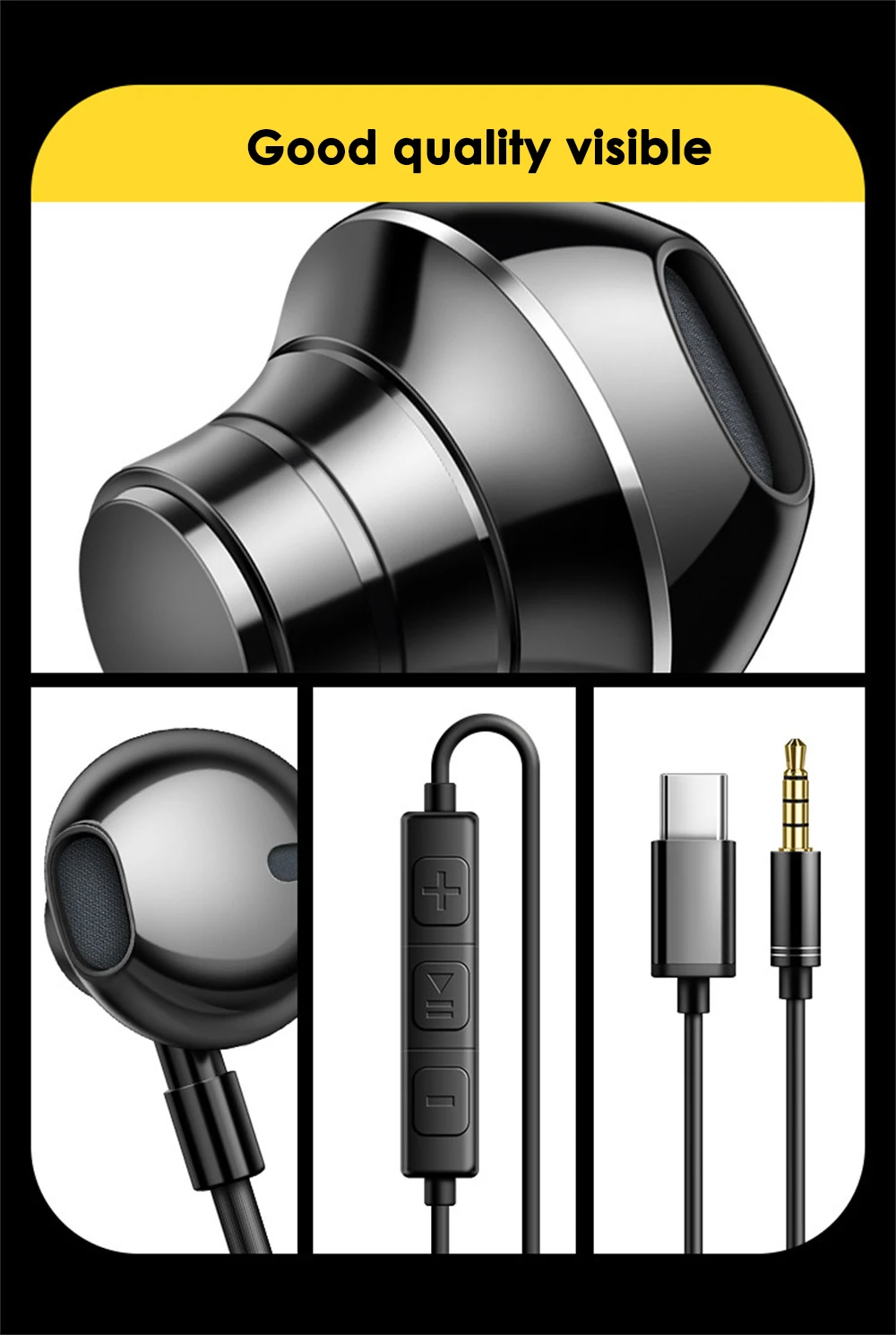 Comprar Wei-auriculares intrauditivos con cable piezas, audífonos con conector tipo C, graves profundos, micrófono y Control de botón, de 1 a 6 TC-5, 1,2 m