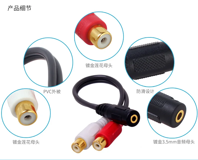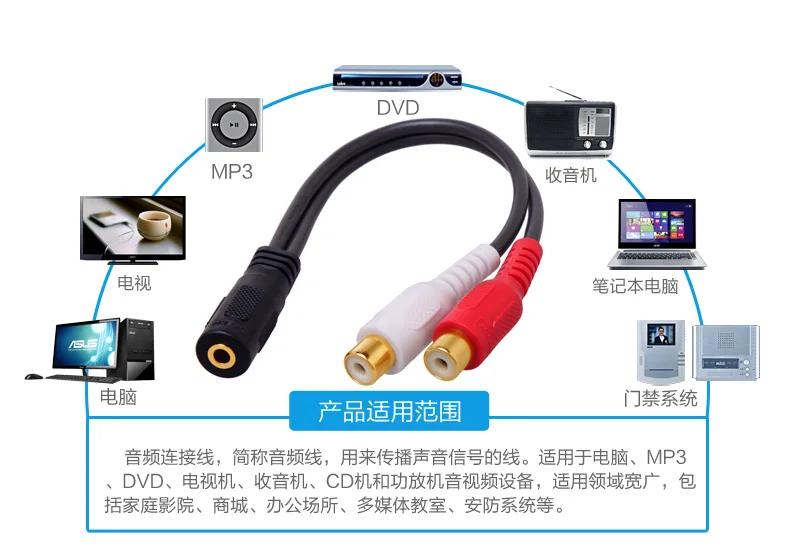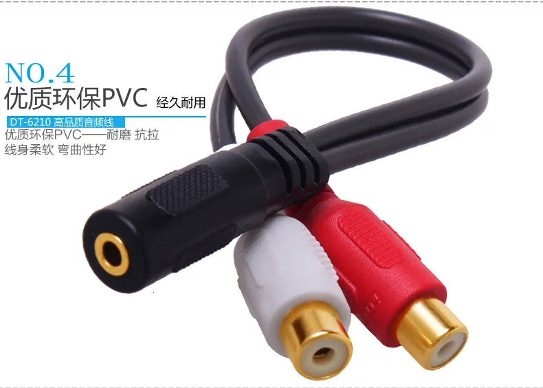 3,5mm estéreo Buchse auf 2 Cinch-buchse Jack Adaptador de audio Y Splitter Kabel Eigenschaften: 1. Verwendet: kann verwendet werden für umwandlung der audio ausgang interfaz de DVD, CD, TV, VCR und andere ausrüstung zu kopfhörer Jack. 2. Interfaz estándar de 3,5mm, interfaz Rot und Weiß RCA weiblich Spezifikationen: Modell: 3,5mm Stereo Weibliche zu 2-RCA Weibliche Stecker: niquelado Material del núcleo draht: Kupfer draht Kabel länge: uber 27cm/10,63 Zoll 1x3,5 Stereo Buchse auf 2 Cinch-buchse Kabel