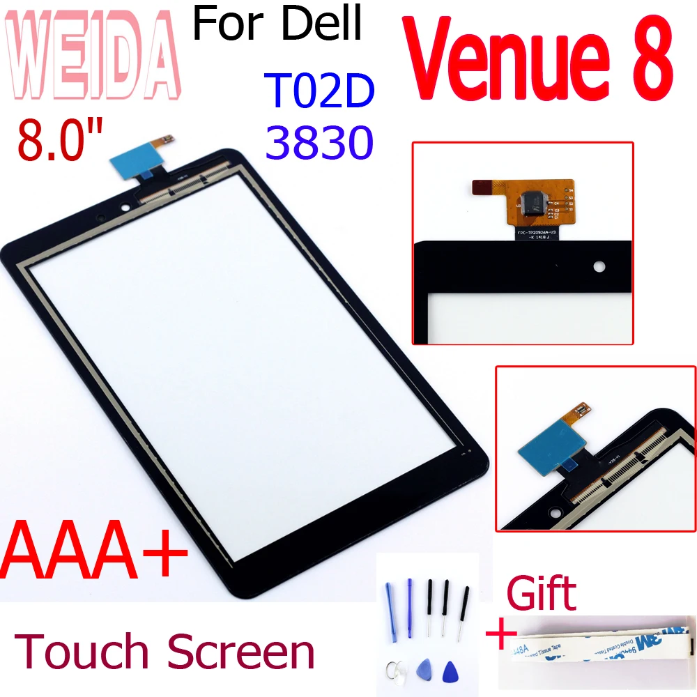 Comprar WEIDA nuevo 8 "para Dell T02D lugar 8 Digitalizador de pantalla táctil negro T02D Panel de pantalla de cristal 1920x1200 lugar 8 3830