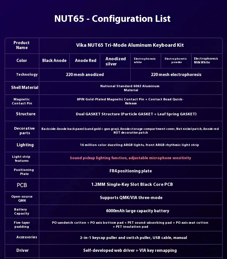 Comprar WEIKAV NUT65 Kit de teclado mecánico 68% diseño teclado para juegos de aluminio BT 2,4G junta con cable RGB desmontaje rápido QMK/VIA