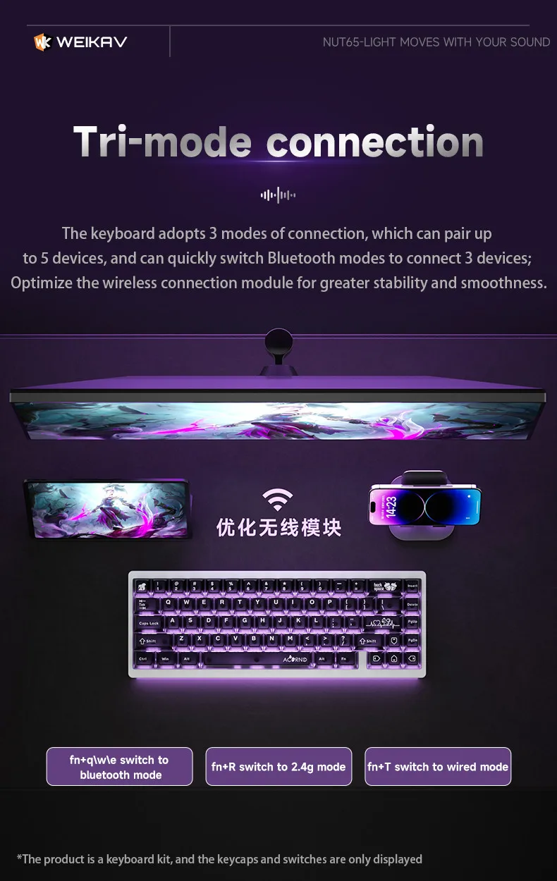 Weikav Nut65 Kit de teclado mecánico de aluminio Estructura de junta de triple modo 65% VIA compatible con oficina de juegos