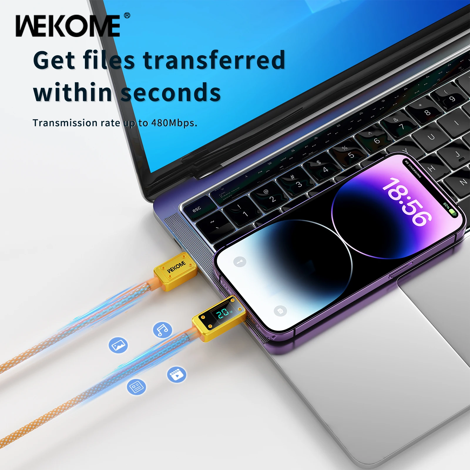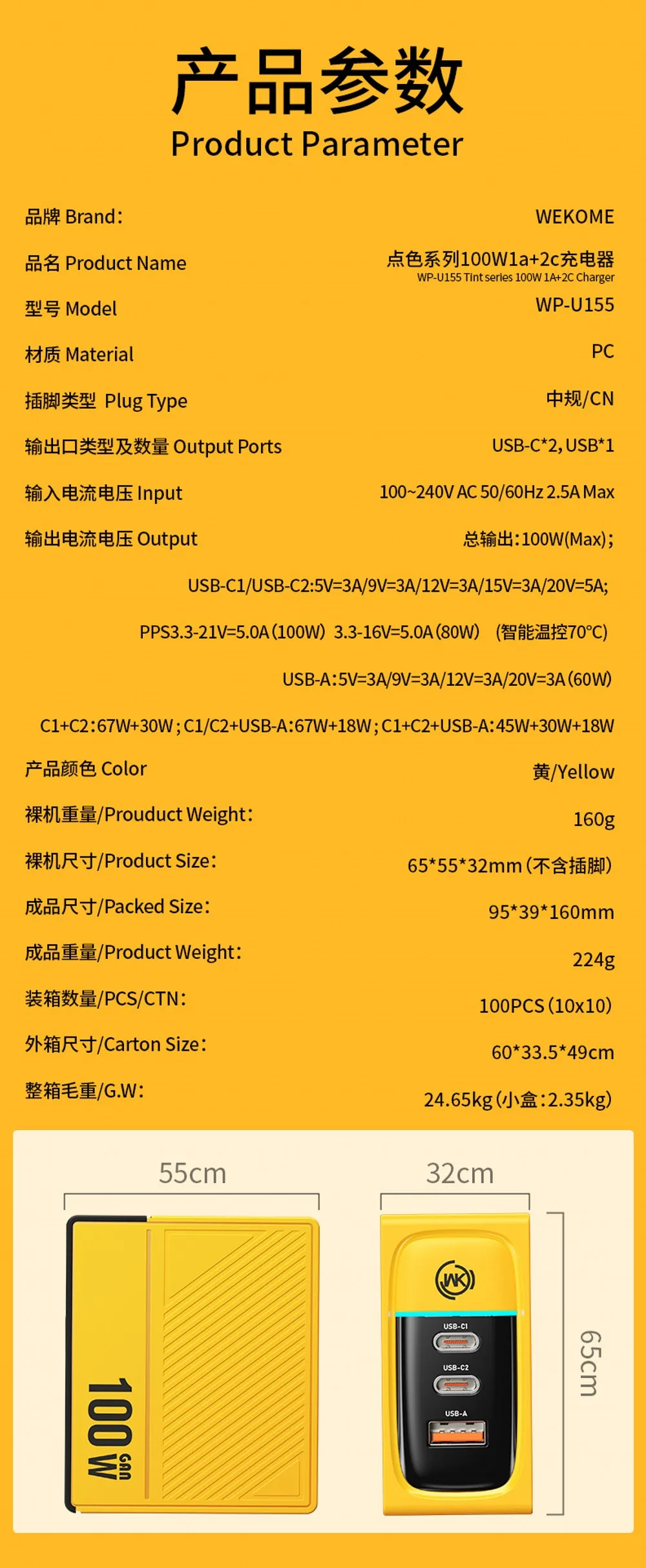 2. Un puerto de hasta 60W, carga rápida para Huawei/Samsung/Xiaomi y otros modelos, admite protocolos de QC3.0/QC2.0/SCP/FCP/AFC/APPLE2.4/BC1.2/PE2.0.