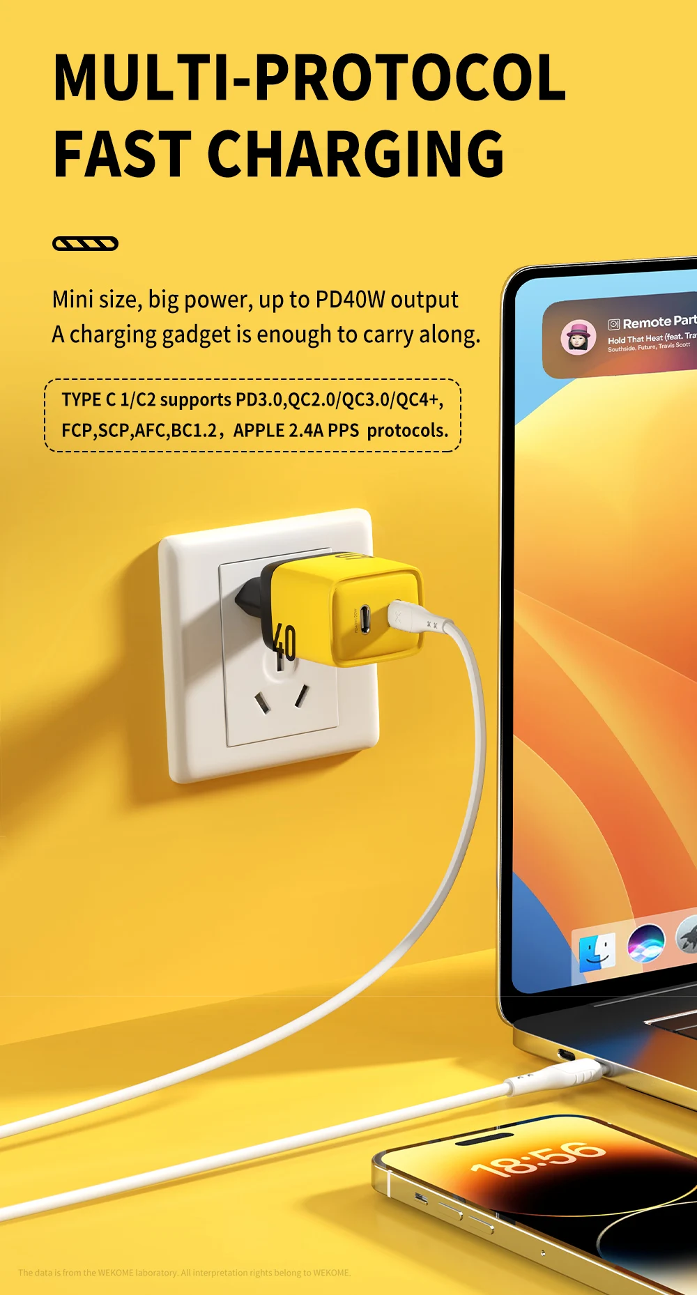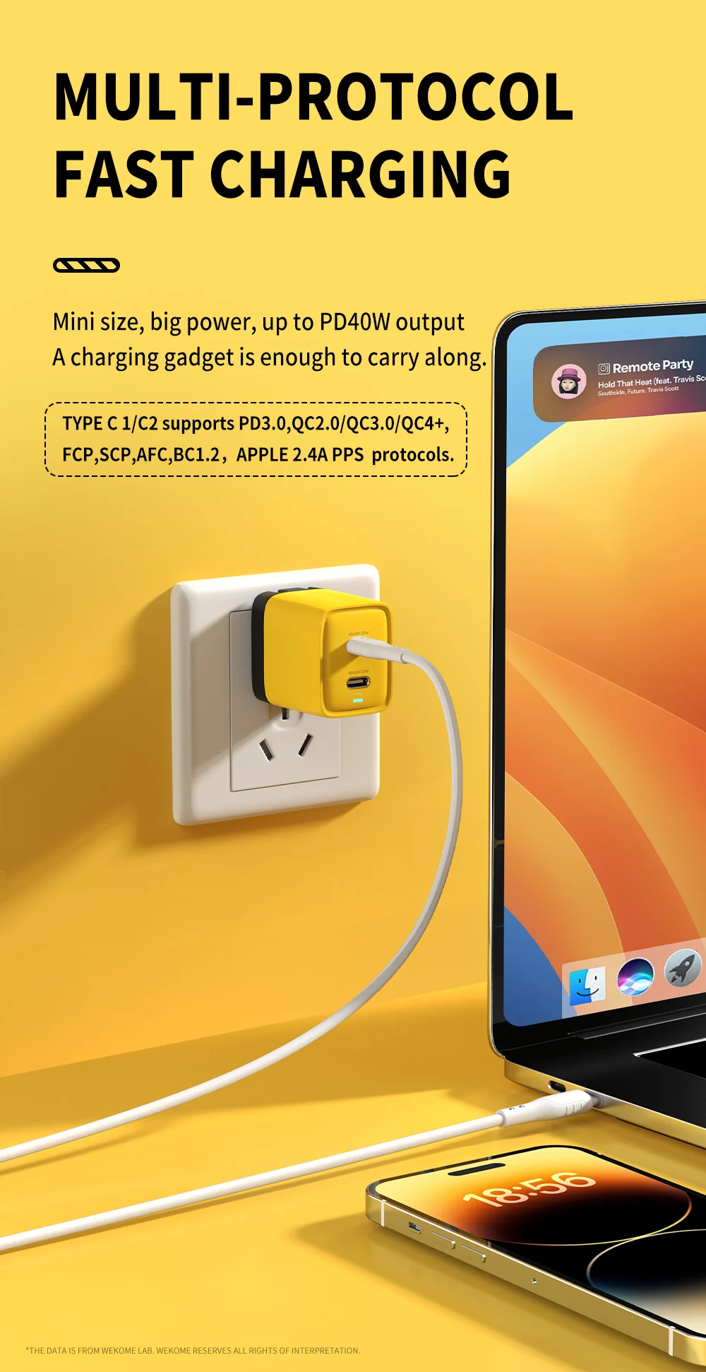 Comprar WEKOME-cargador USB tipo C, cargador portátil GaN de 40W, 20W, compatible con tipo C, PD, carga rápida para iPhone 15, 14, 13, 12 Pro Max, 11
