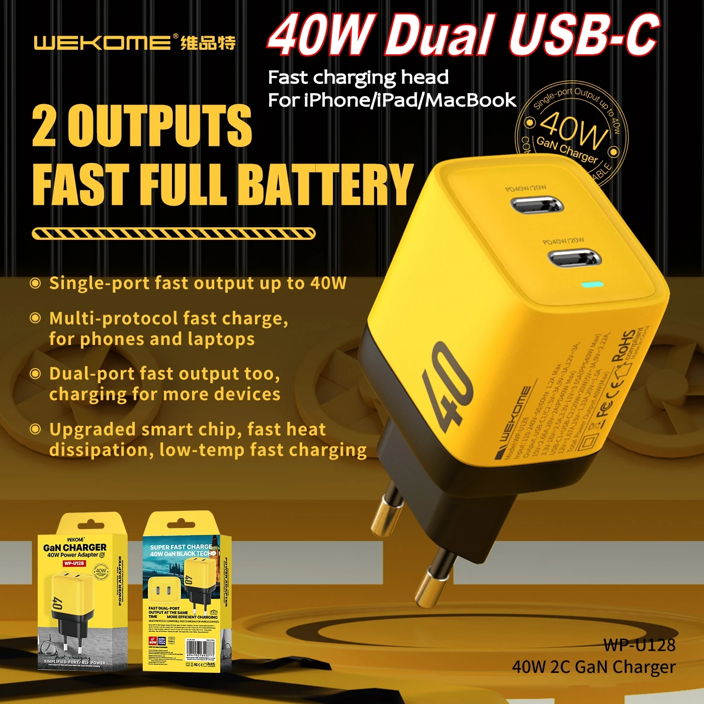 Comprar WEKOME-cargador USB tipo C, cargador portátil GaN de 40W, 20W, compatible con tipo C, PD, carga rápida para iPhone 15, 14, 13, 12 Pro Max, 11