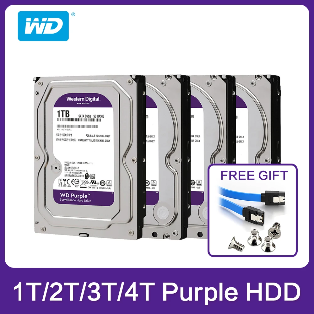Comprar Western Digital-disco duro WD púrpura HDD, 1TB, 2TB, 3TB, 4TB, SATA, 6,0 Gb/s, 3,5 pulgadas, para cámara cctv, AHD, DVR, IP, NVR