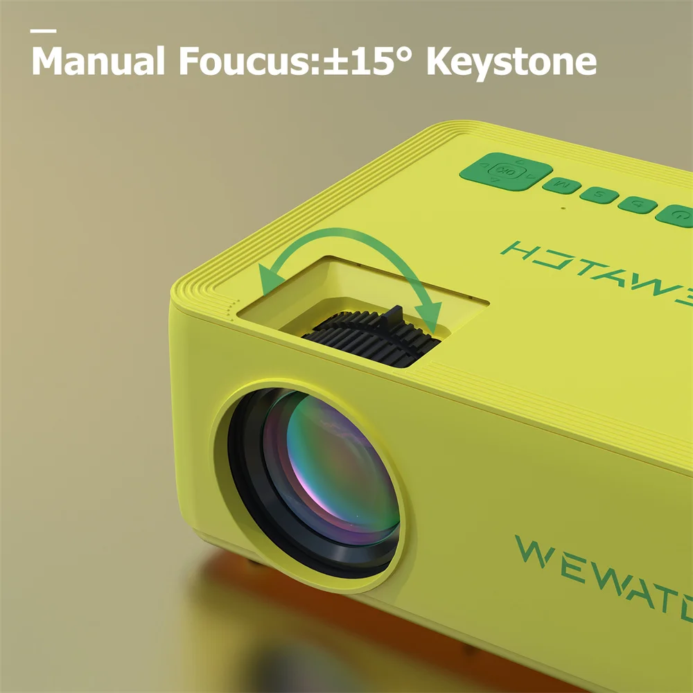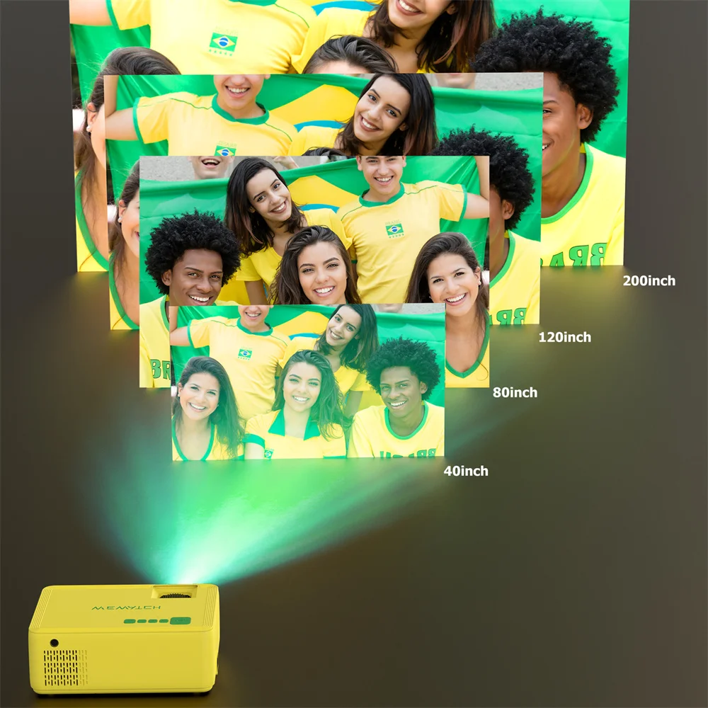 <Pantalla grande pero portátil>: El proyector WEWATCH proporciona un tamaño de visión de 40 "a 200" y una distancia de proyección de 1,2 a 6,5 m. Con un efecto de proyección tan excelente, el diseño portátil todavía se mantiene, y el tamaño del cuerpo es comparable al de un diario.