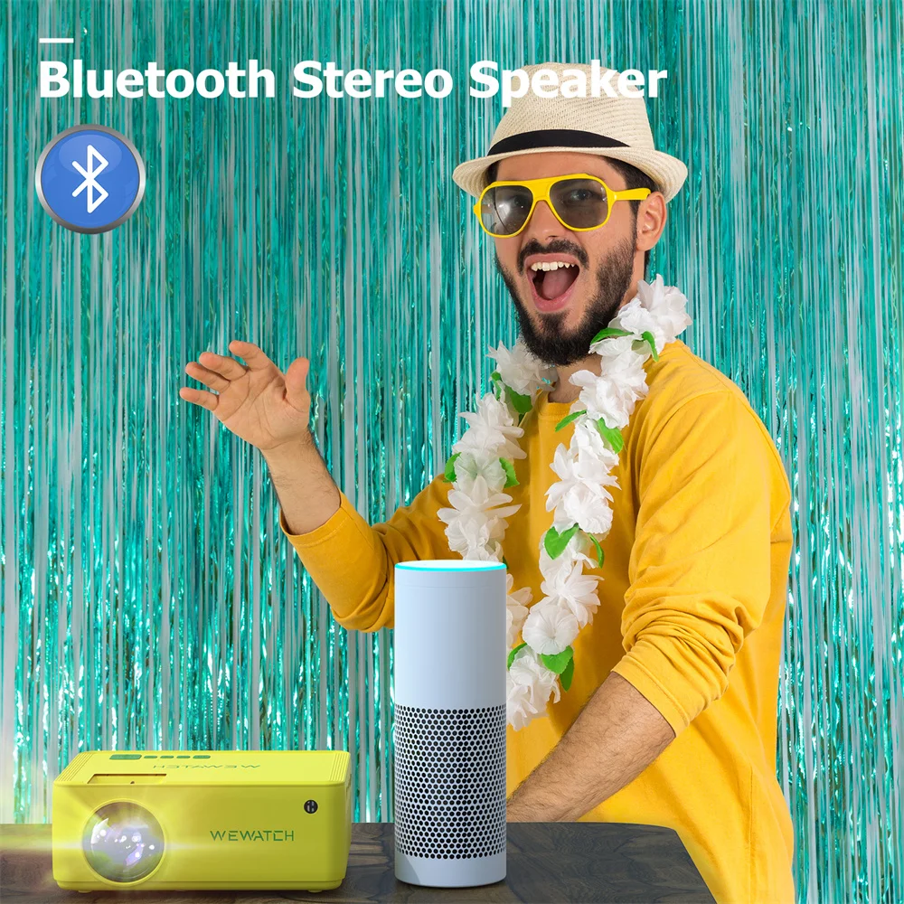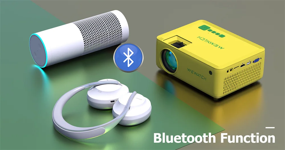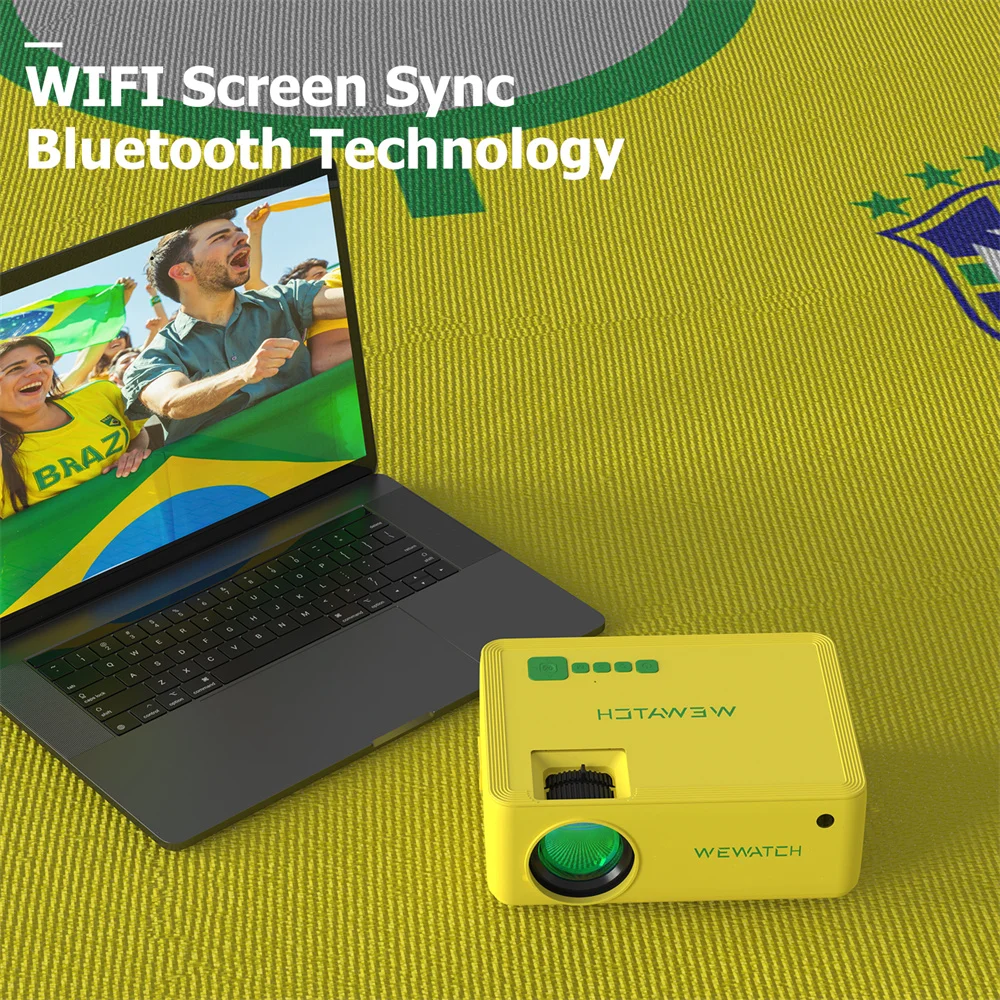 <Conexión Wifi 2,4G y función Bluetooth 5,0>: El proyector WEWATCH tiene la función de bluetooth, puede conectar su Altavoz bluetooth ideal de forma inalámbrica en cualquier momento. El WiFi ultrarrápido de 2,4G permite una experiencia de transmisión gratuita de lag para juegos en línea y transmisión de vídeo sin interrupciones. La función de compartir pantalla inalámbrica ofrece comodidad para ver todo tu contenido favorito transmitiendo desde dispositivos iOS o Android.
